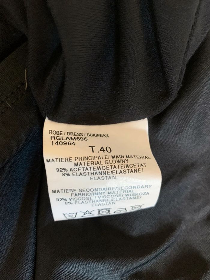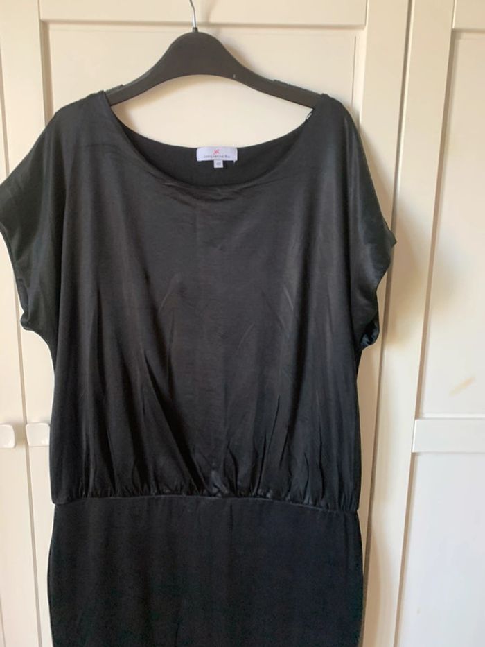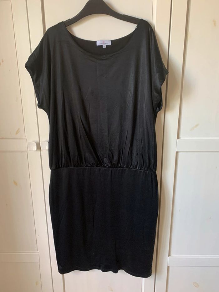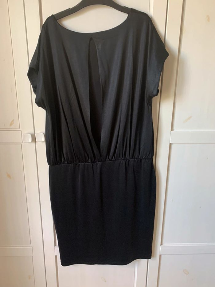 Robe noire satinée taille élastique manches courtes fendue dans le dos très peu portée