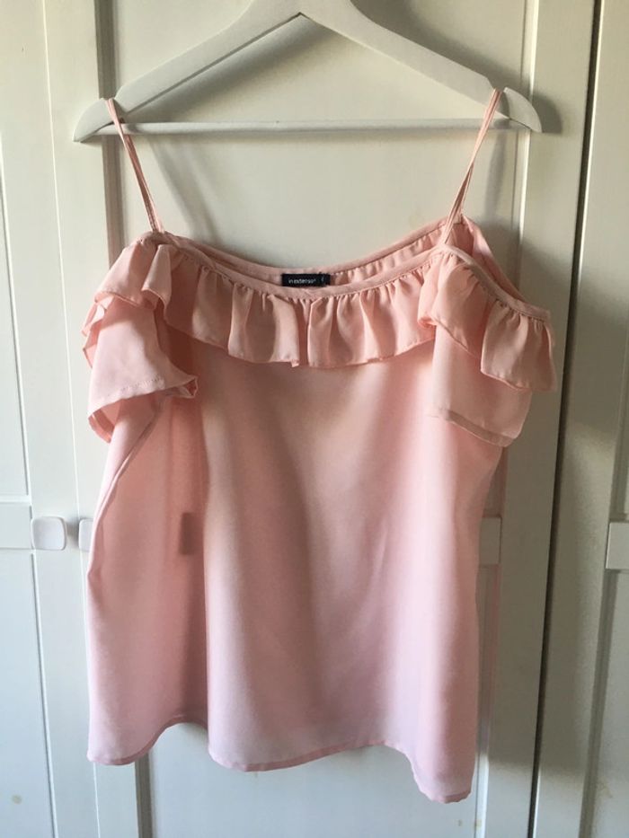 Haut rose à volants fins bretelles