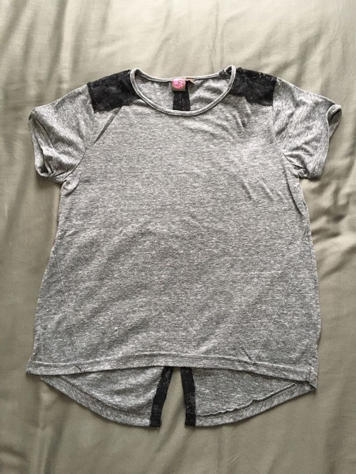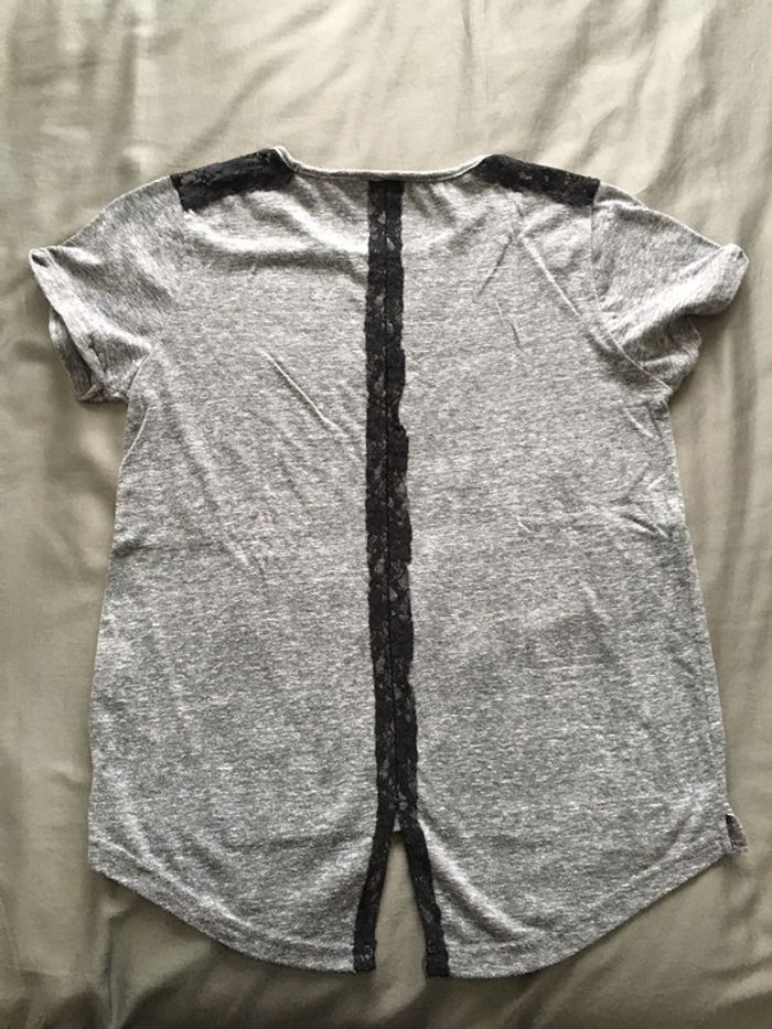 teeshirt gris chiné manches courtes et dentelle