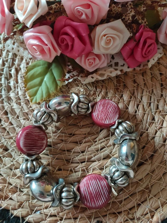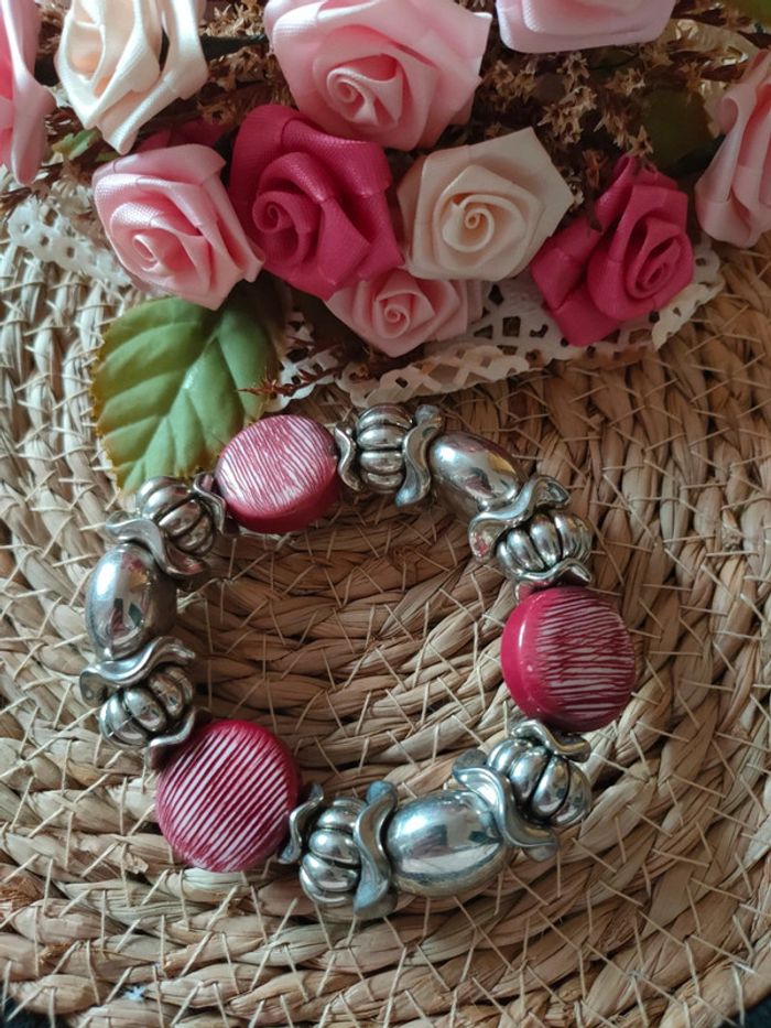 👉 Neuf 👉 Jamais porté 👉 Sans emballage d'origine 👉 Couleur argenté/ bordeaux et blanc 👉 Bracelet élastique #braceletjennifer