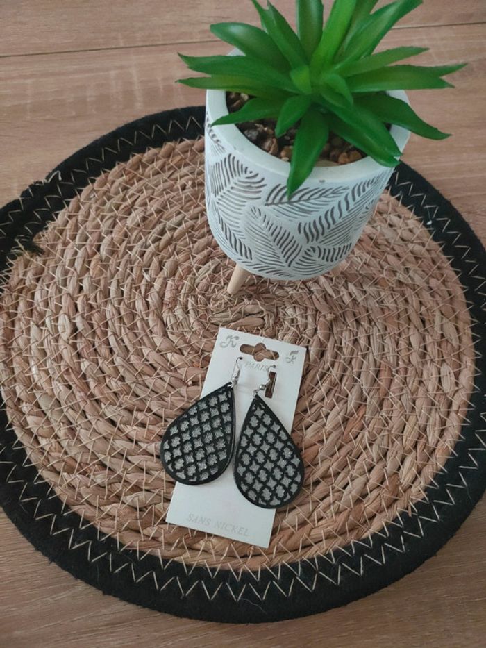 🎀Paire de boucle d'oreille noir et argenté🎀
