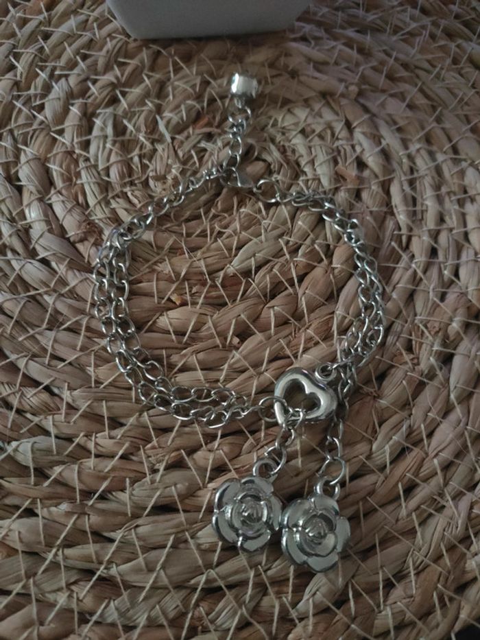 👉 Neuf 👉 Jamais porté 👉 Sans emballage d'origine 👉 Couleur argenté et breloque fleurs 👉 Dimensions bracelet en longueur: 24 CM 👉 Bracelet réglable #braceletjennifer