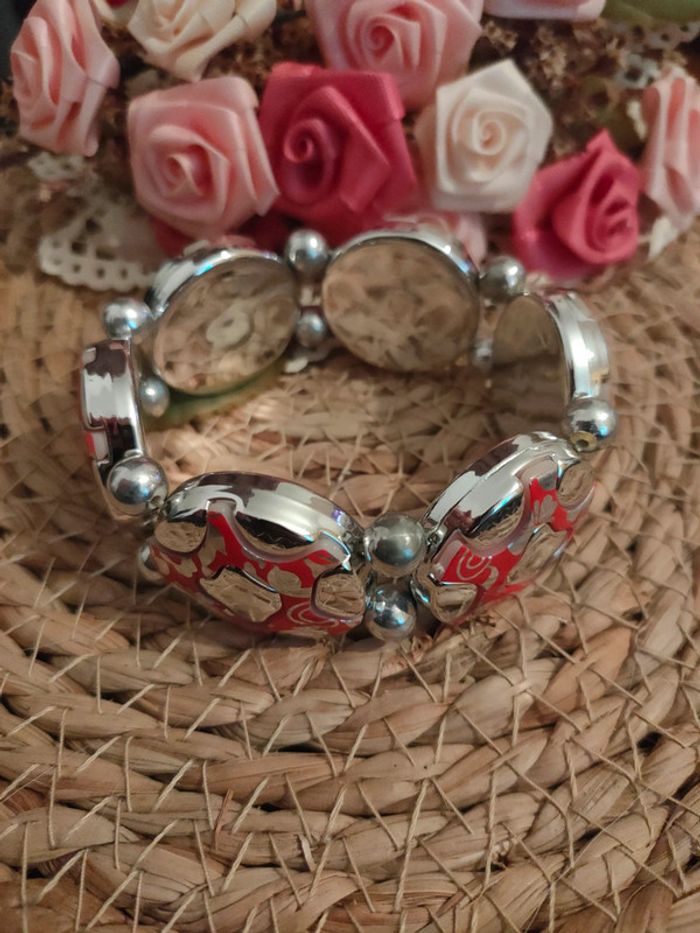 🎀Bracelet élastique argenté et rouge🎀 - photo numéro 2