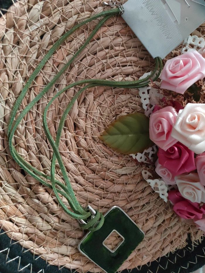 👉 Neuf 👉 Sur son support d'origine 👉 Marque New Fashion 👉 Fermoir mousqueton 👉 Couleur argenté et vert #colliersjennifer