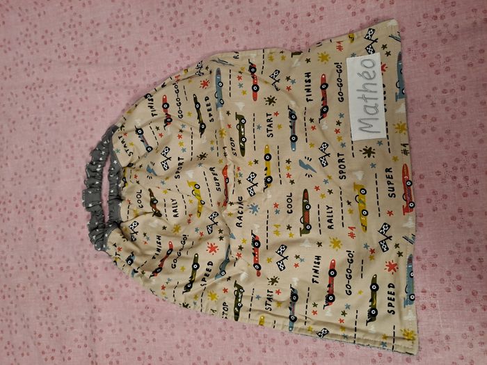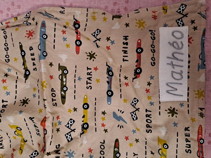 Bavoir élastique avec Prénom "Mathéo" brodé. J'ai acheté ce bavoir (sur un site de créateurs bien connu) à une vendeuse qui les fait main. On voit que c'est de la qualité et très bien fait. Je pensais en avoir besoin pour une occasion et au final non et après les avoirs bien rangé, je l'ai oublié et retrouvé récemment. J'ai ai acheté plusieurs de différents coloris, j'en ai en vente sur d'autres annonces du coup. Motif voitures. Matière tissus et éponge de bambou. Neuf, jamais utilisé.