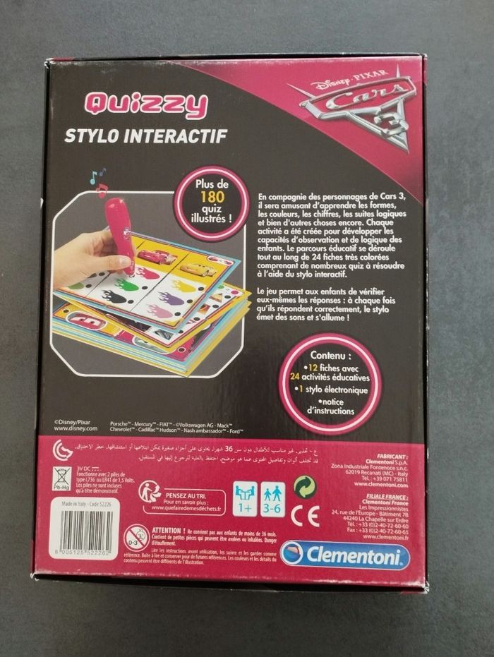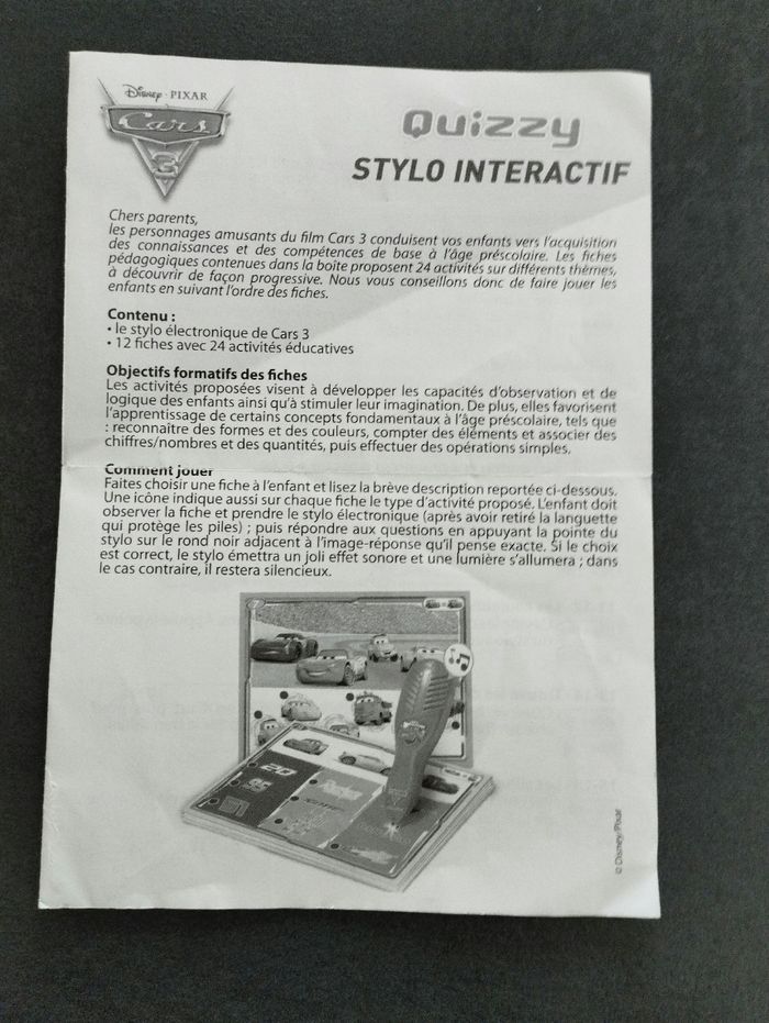 Vends jeu stylo interactif Disney cars de la marque clemontoni Jeu complet avec sa boîte, la notice, les 12 fiches et son stylo interactif Age 3 à 6 ans Fonctionne correctement et en très bon état