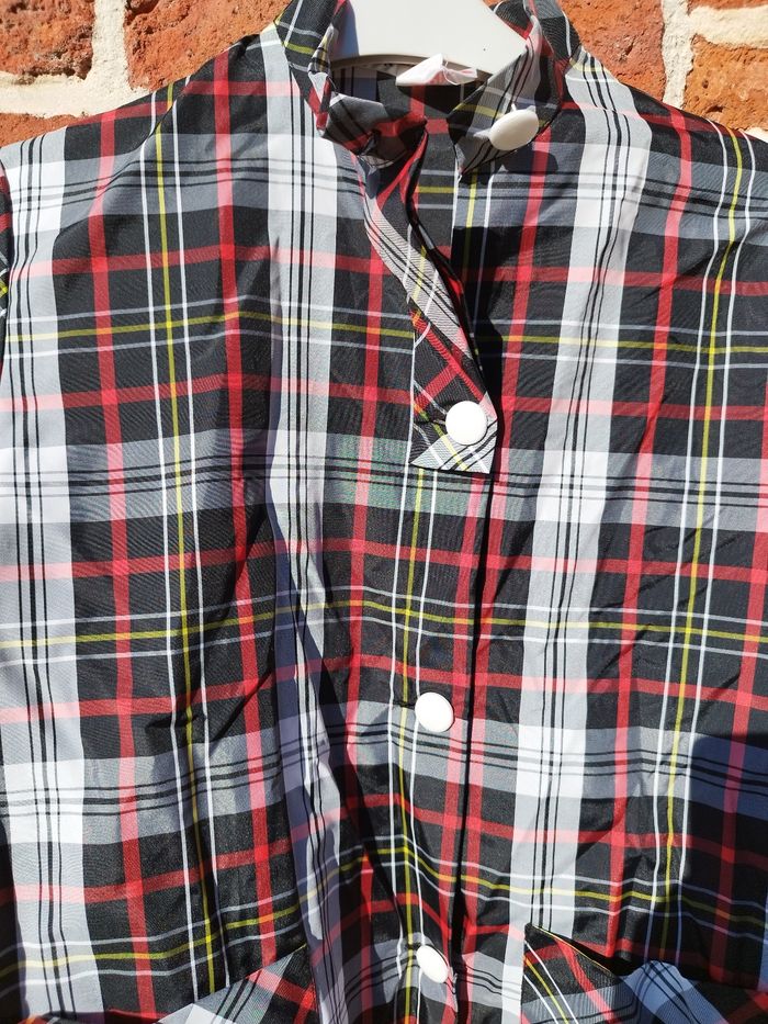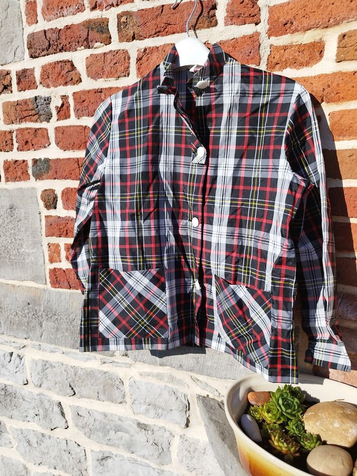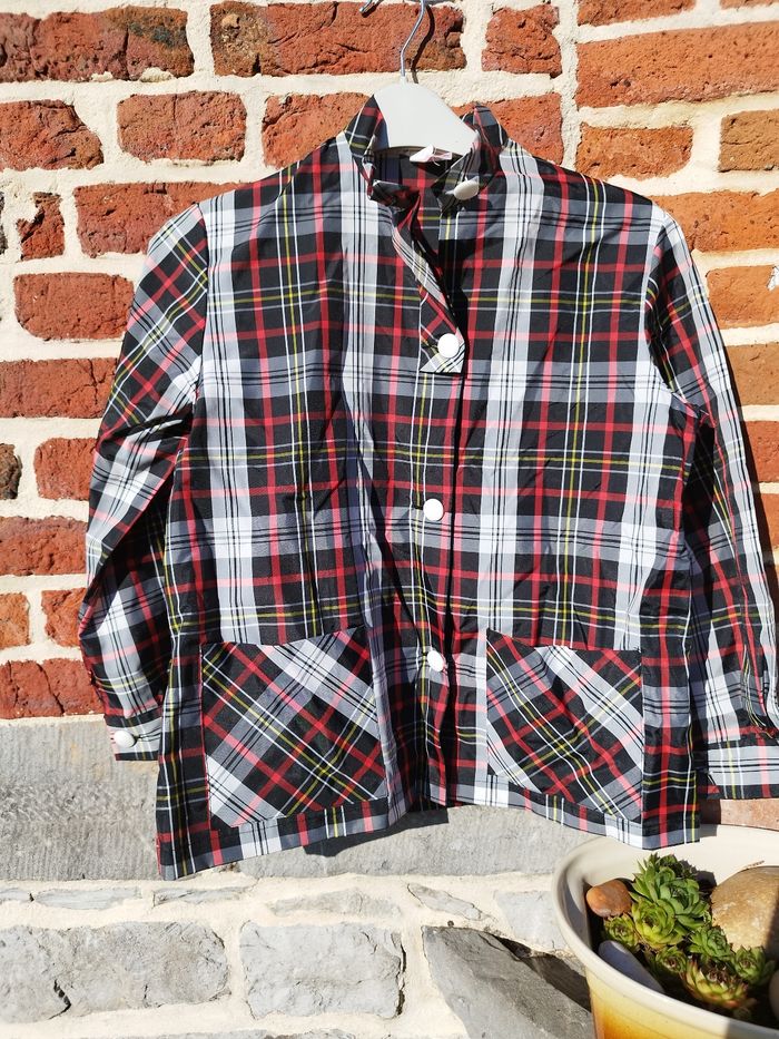 Sublime et authentique blouse vintage retrouvée chez une mamie qui avait une boutique dans les années 70... À porter en blouse ou comme top pour être ultra tendance ! 4 boutons 2 poches 100% nylon Neuve Étiquette taille 7/8 ans, vérifiez vos mesures.... Épaules : 37cm Aisselles : 47cm Longueur : 53cm