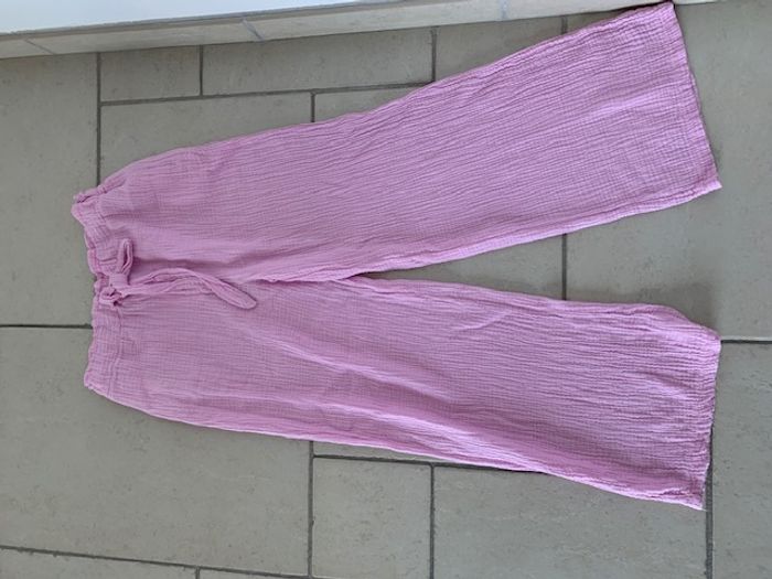 pantalon femme rose en gaze de coton - photo numéro 1