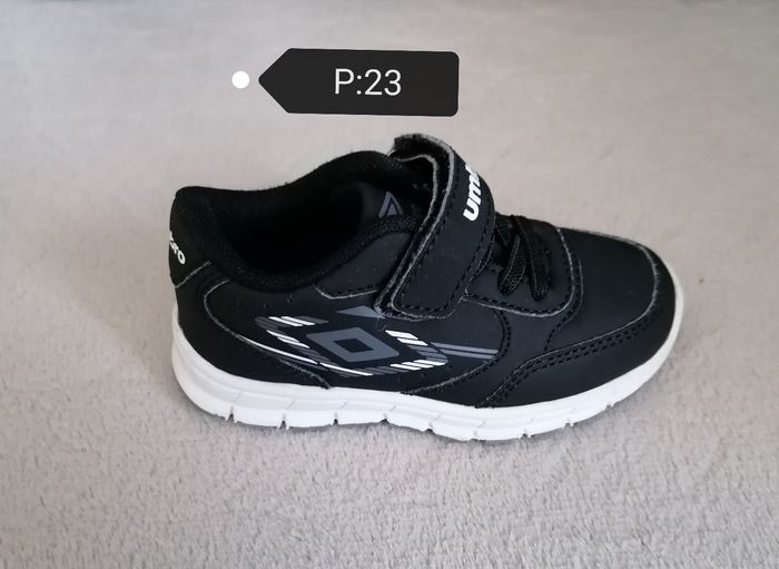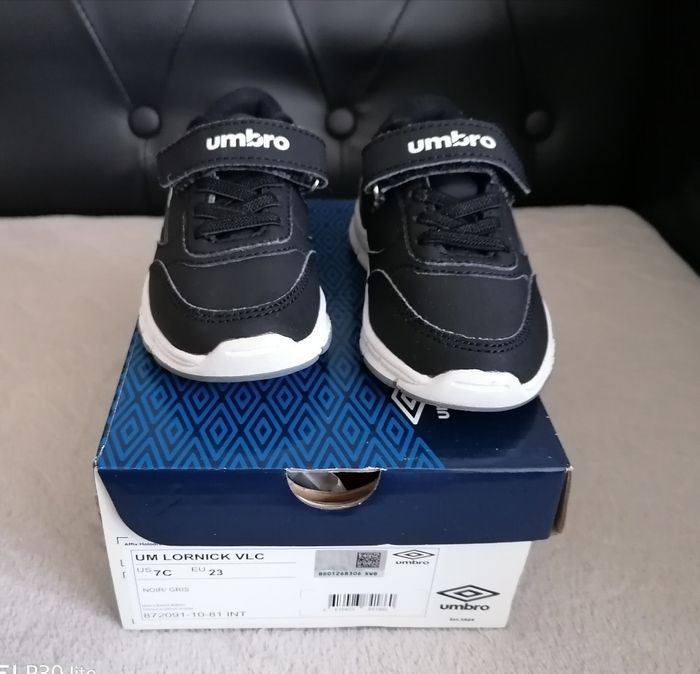 Basket fille, Umbro. P:23 Acheté chez inter sport. Noir blanc. Fermeture scratches Portée un jour (serré pour ma fille) Acheté à 29,90€. Pri€sur la boîte. Dans son emballage d'origine 18€