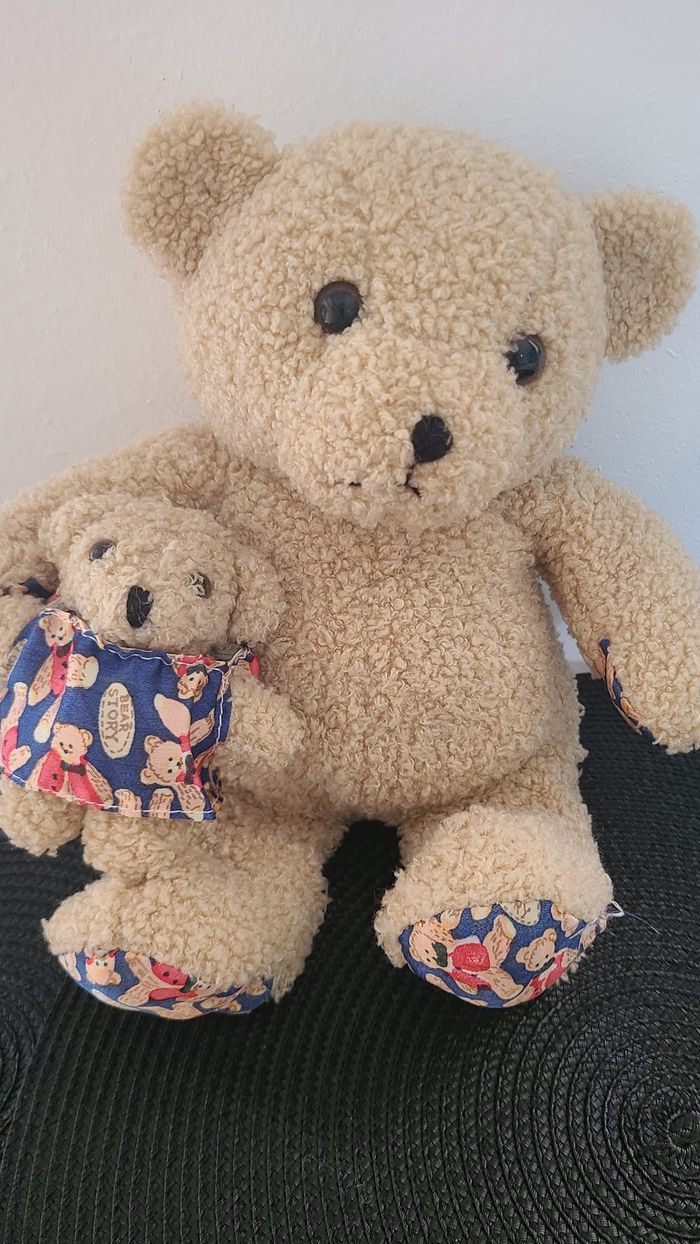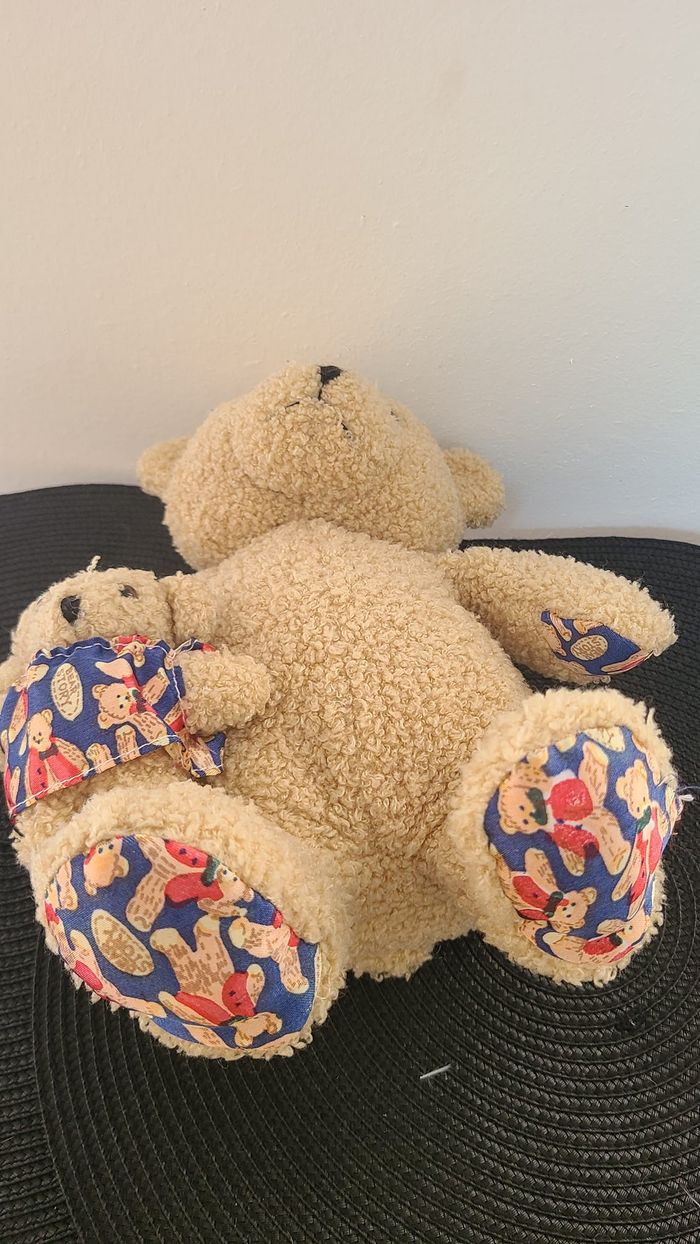 DOUDOU PELUCHE OURS MAXITA BEIGE IMPRIME BLEU ROUGE OURS ET SON BEBE 30 CMS 5