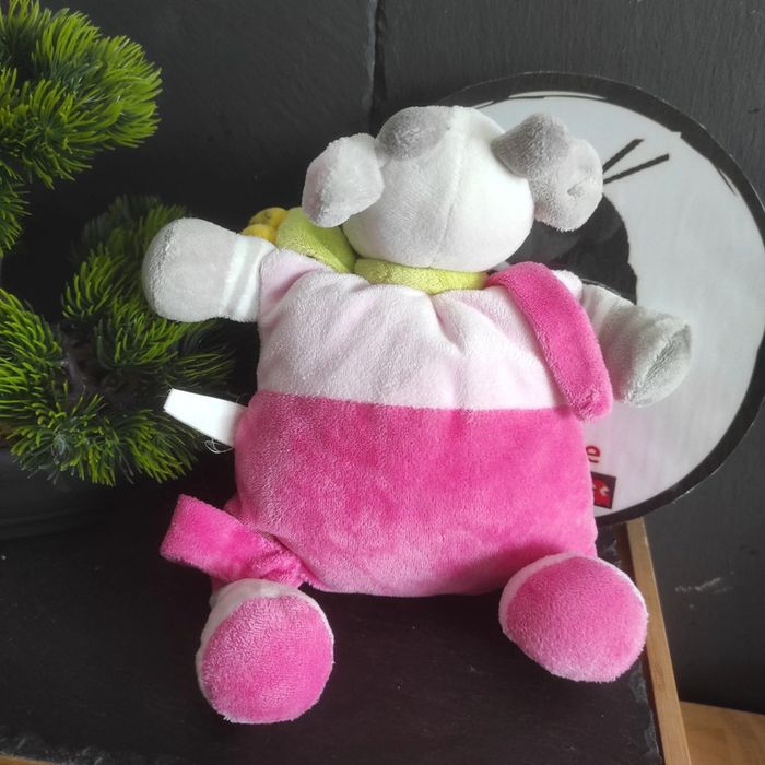 Doudou semi plat vache rose gris poussin Nicotoy grelot feuille écharpe Vert - photo numéro 3