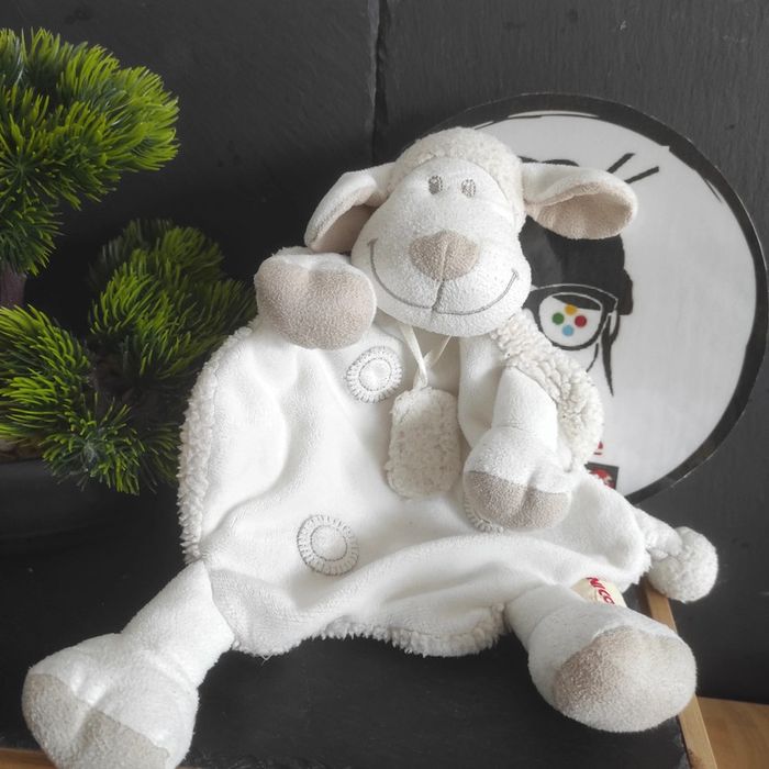 Doudou plat mouton blanc beige NICOTOY blanc collier rond laine Pattes Bel état Afin de ne pas abîmer les doudous et de laisser le choix dans l'utilisation de la lessive les peluches ne sont pas lavées avant envoi Envoi sous 24/48 heures (pas d'envoi du samedi au lundi cependant) Description complément : #geektradenicotoy Petit nettoyage à prévoir Vous achetez ce que vous voyez les photos font entièrement partie de la description Transport : Les frais de transport comprennent les frais du transporteur ainsi que l'emballage pour protéger au mieux votre achat. Chaque achat est envoyé en format colis avec numéro de suivi Le poids du colis est de 500g finit (je ne peux pas faire moins) il peut donc y avoir plusieurs objets dans le carton si vous le souhaitez (contactez moi afinde grouper les frais de port) Référencement : #geektradedoudou #peluche #plush  #doudou #enfant #bebe