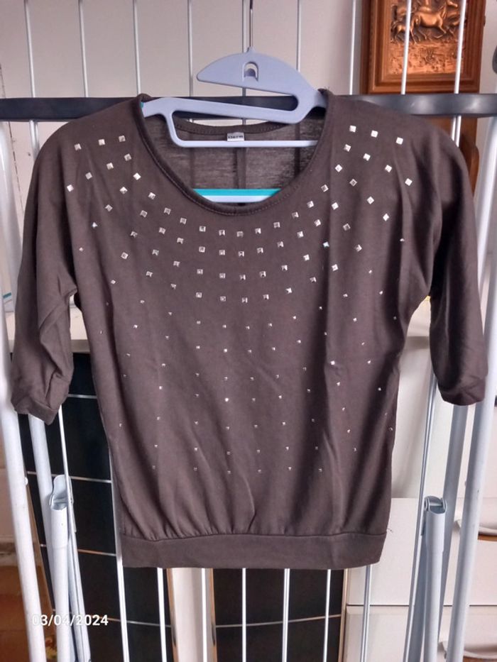T-shirt manche au 3/4 . De couleur marron . Fin . En parfait état. Taille 9/10 . #alex08380_9_10ansfille