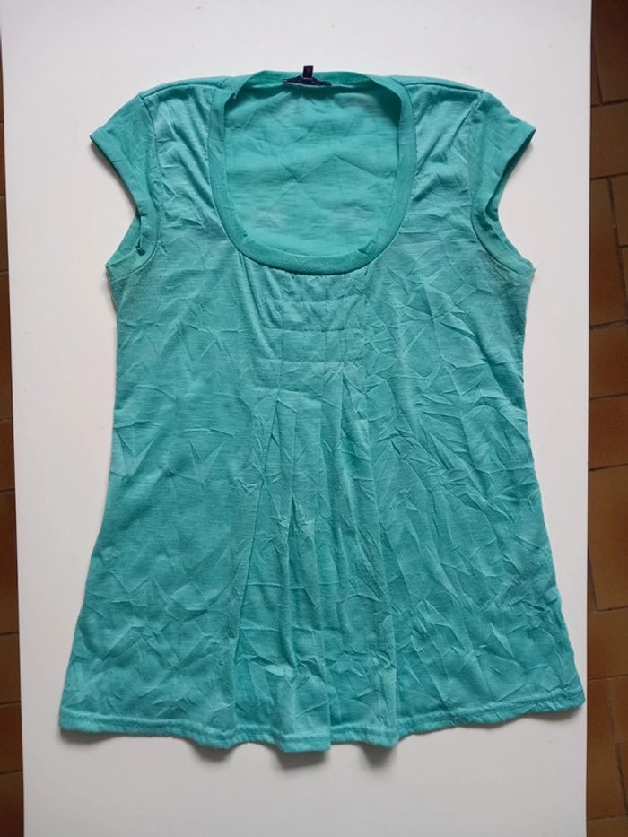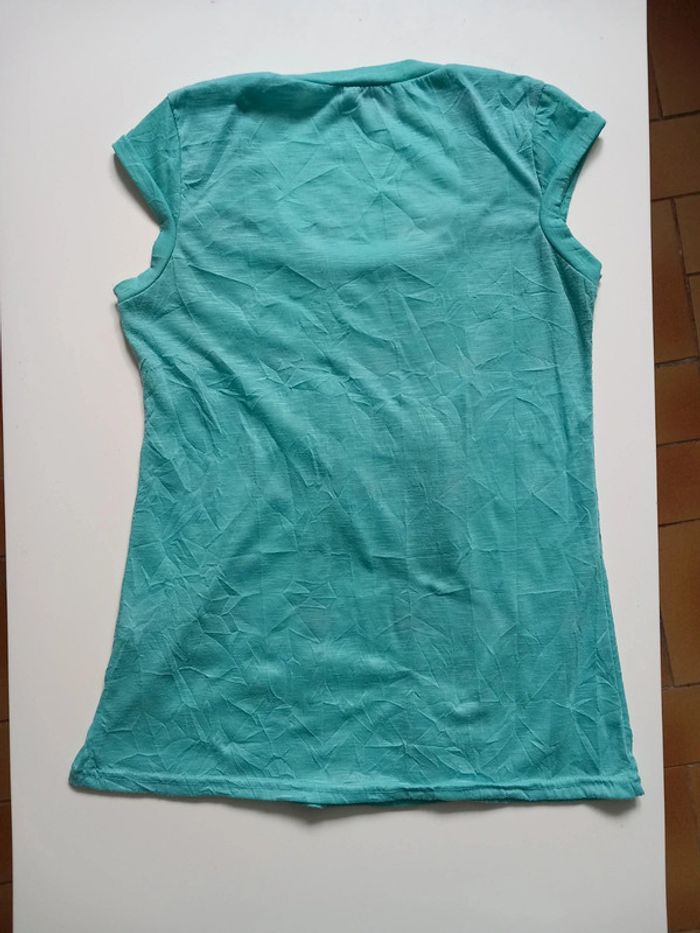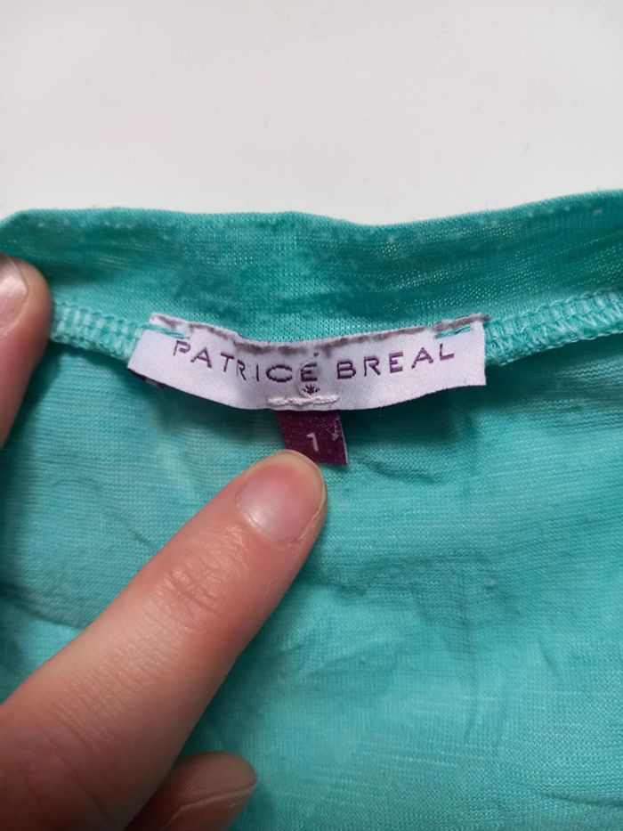 T-shirt fin . De couleur vert . Col en U . Impe transparent. Voir 3ème photo . En parfait état. Taille S . Marque patrice breal #alex08380_36
