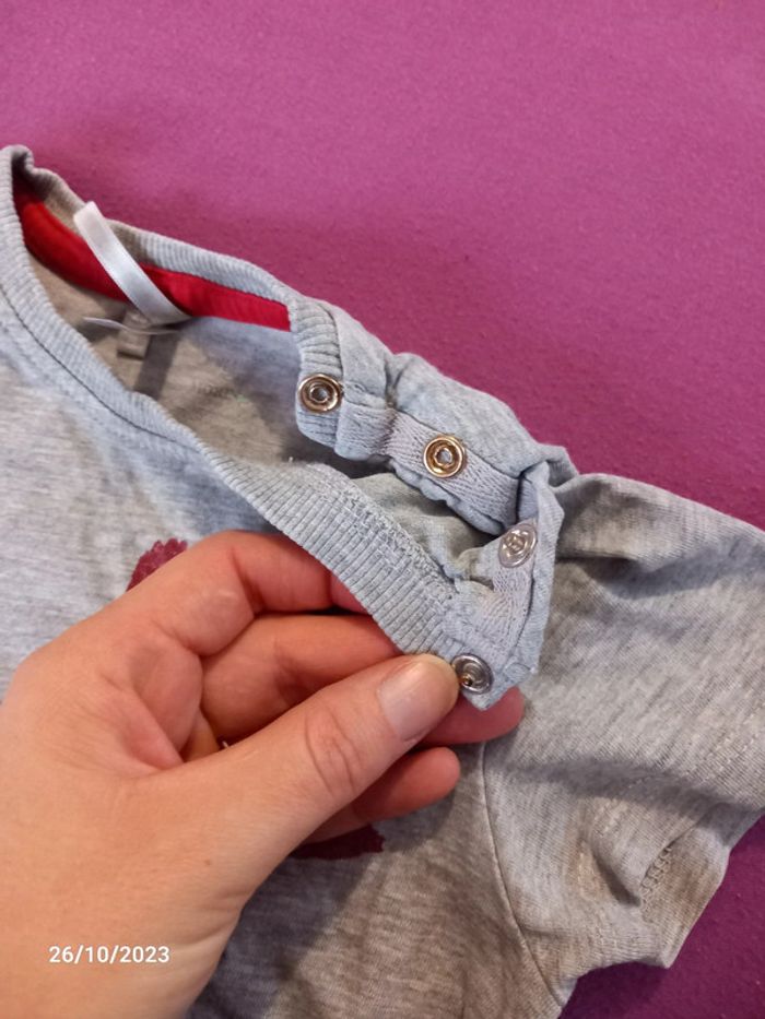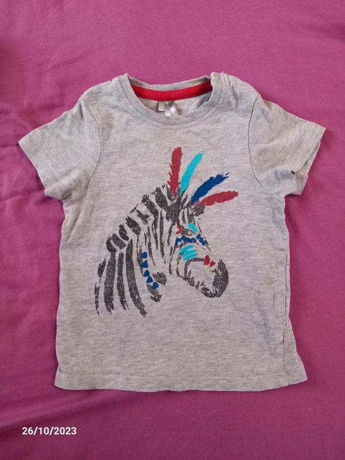 T-shirt manche courte. De couleur gris . Motif zebre. Ouverture a pression sur l'épaule. En parfait état. Taille 2 ans . Marque orchestra. #alex08380_2ansgarçon