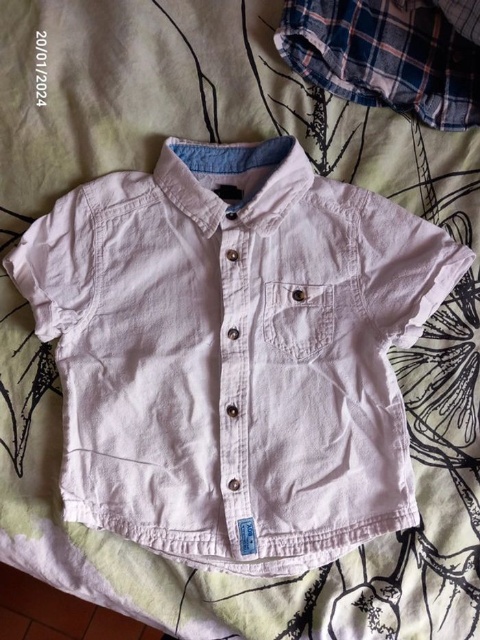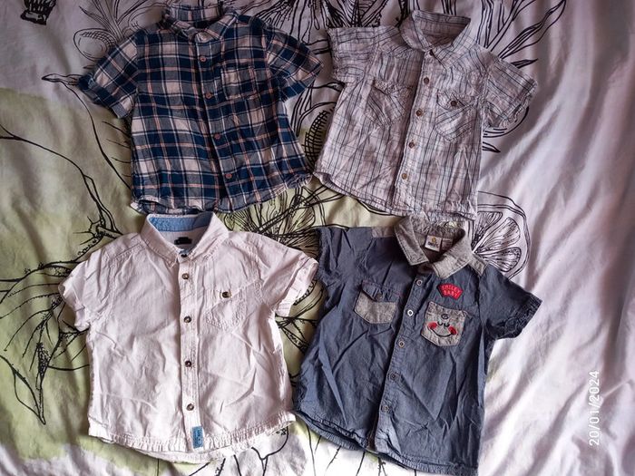 Lot composé de 4 chemises manches courte : - une marine . A carreaux . Ouverture a pression. Marque creek . - une blance . A carreaux. Ouverture a bouton. Marque intermarché - une bleu . Ouverture a bouton. Marque smiley . - une blanche. Uni . Ouverture a bouton. Marque kiabi. En parfait état. Taille 24 mois . Les chemises peuvent être vendu séparément #alex08380_2ansgarçon