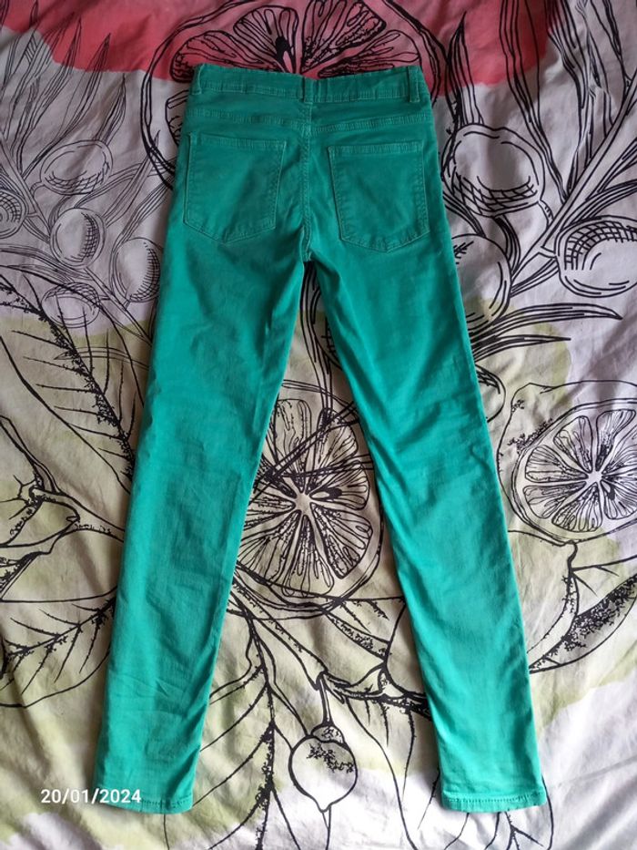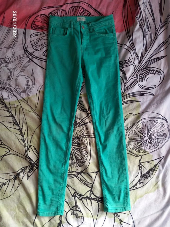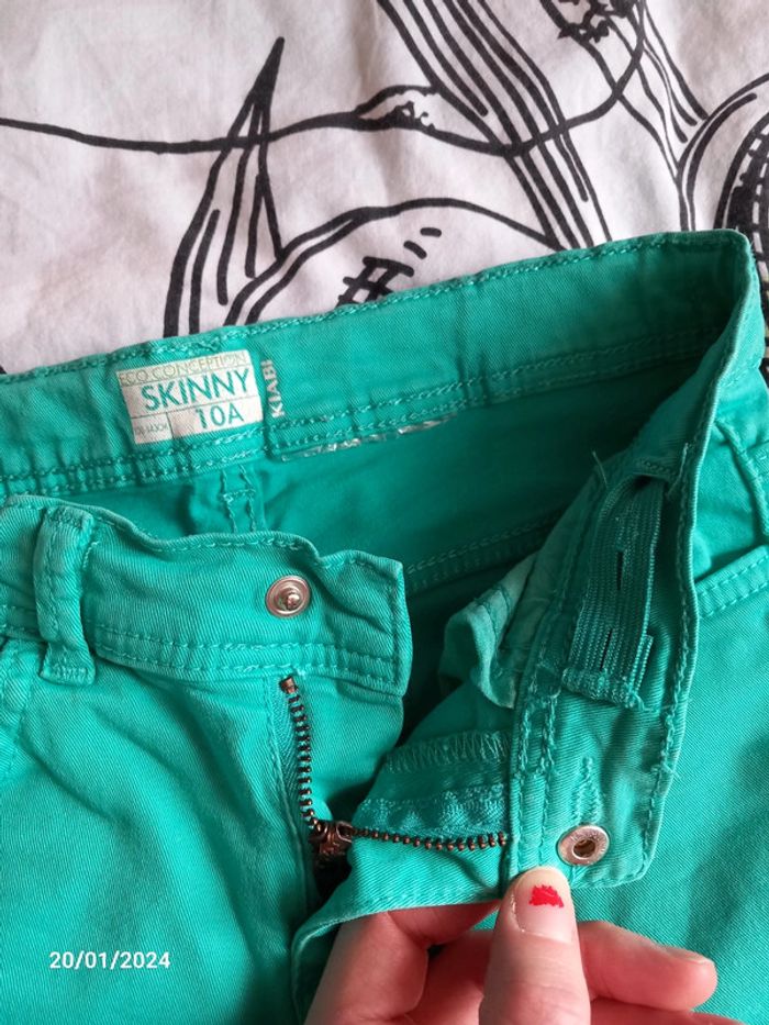 Jeans skinny. Couleur vert . Serrant . Réglable a la taille. En parfait état. Taille 10 ans . Marque kiabi . #alex08380_10ansfille