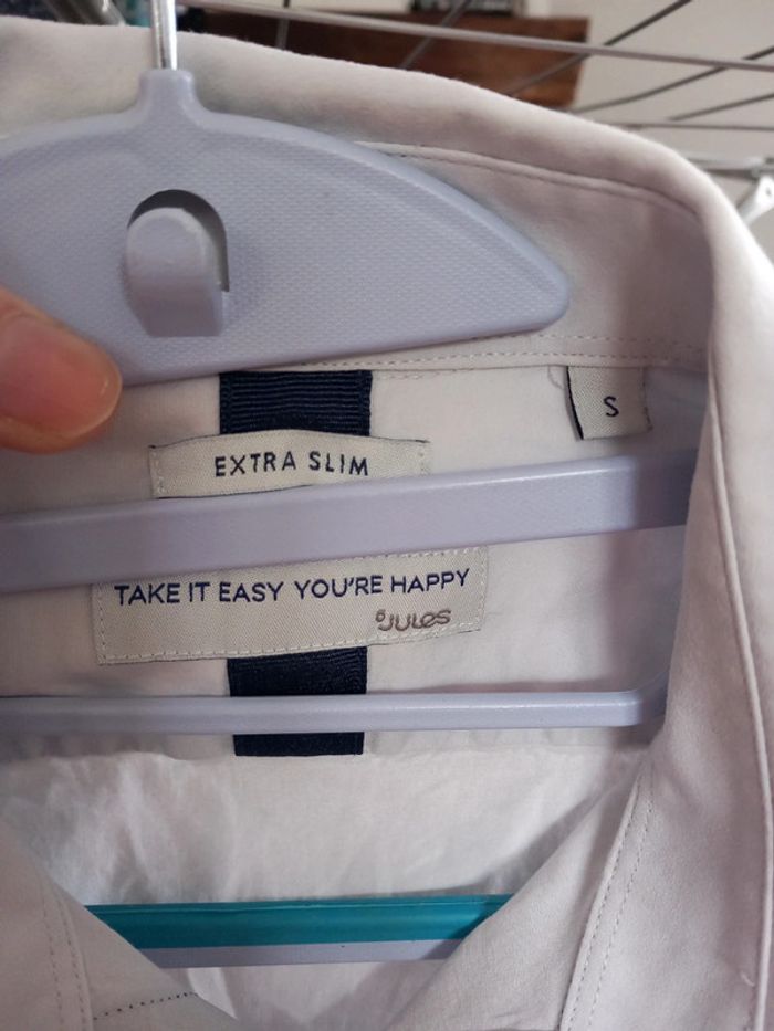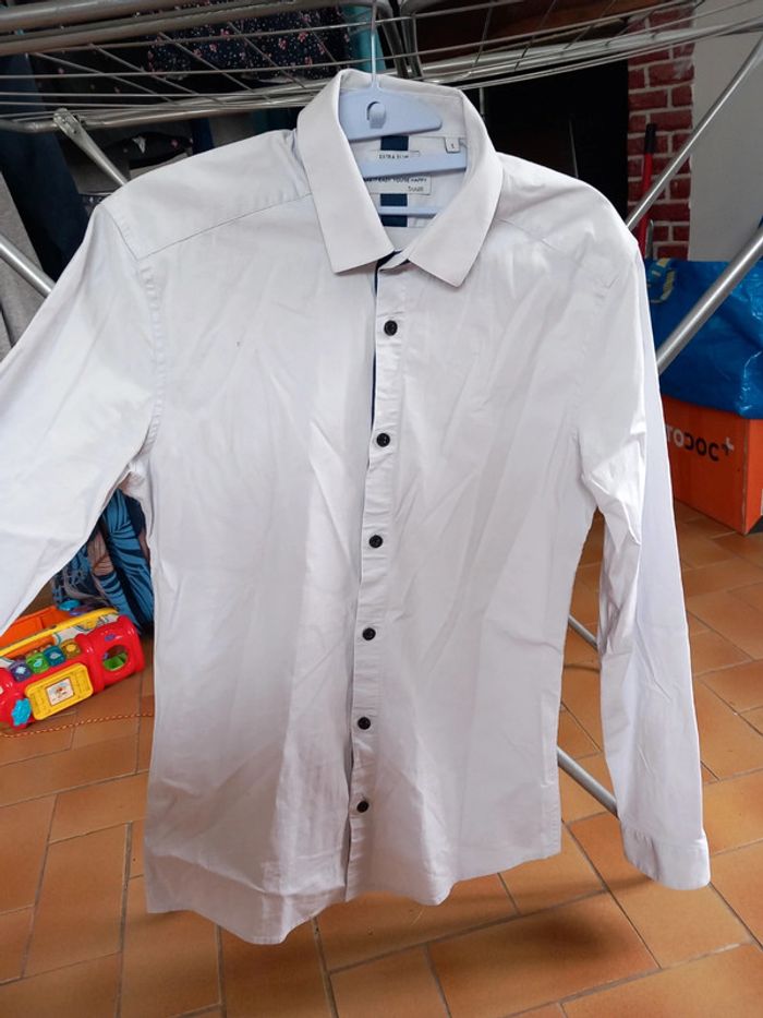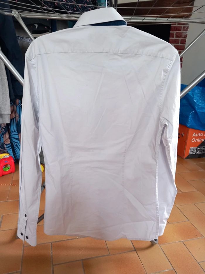 Chemise unie. homme . Couleur blanche avec bouton noir. En parfait état. Taille S. Marque jules #alex08380_S_homme