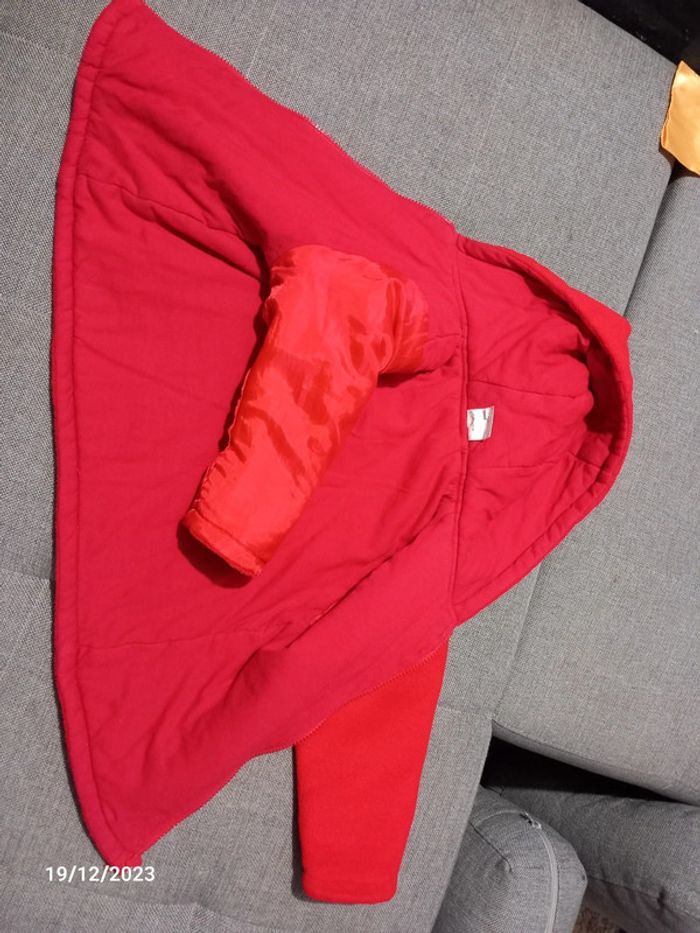 Manteau a capuche . Doux et Chaud . De couleur rouge . Poches sur le devant. A zippe En parfait état. Marque inconnu . Taille 2ans #alex08380_2ansgarçon