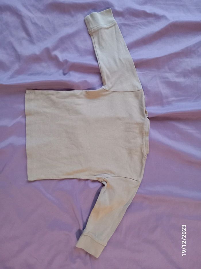 T-shirt. Manches longues. Couleur beige foncé. Serrant aux poignées. Pression sur le haut de l'épaule En parfait état. Marque kidkanai. Taille 2ans #alex08380_2ansgarçon
