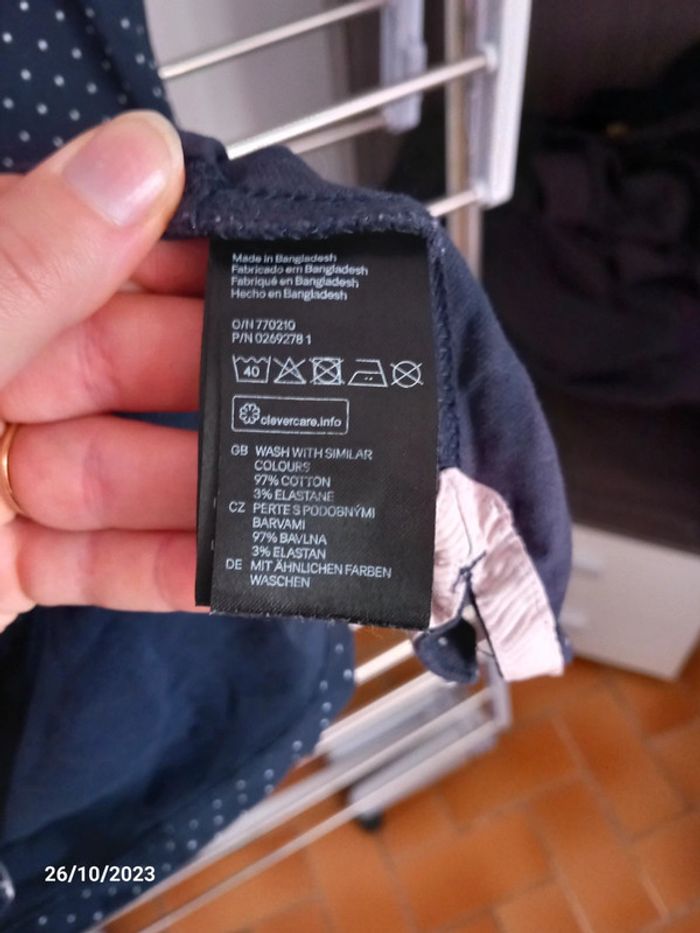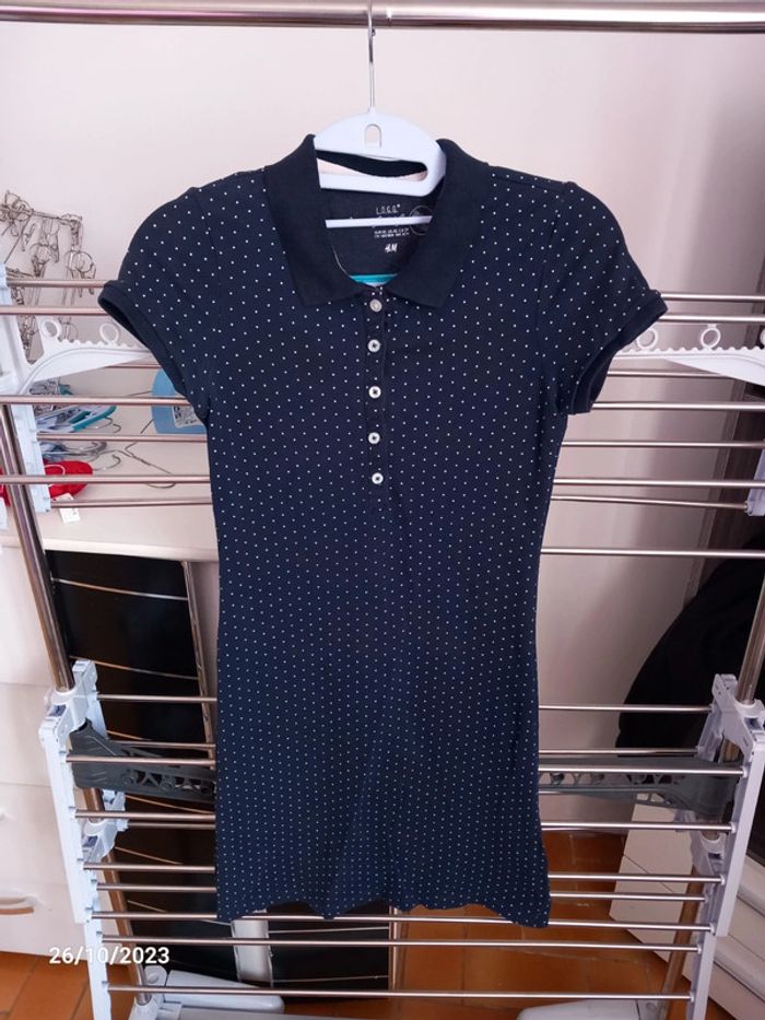 Robe mi longue. De couleur marine . A petit pois. Ouverture a bouton sur le devant. Robe serrante. En parfait état. Marque H&M . Taille 34 . #alex08380_34