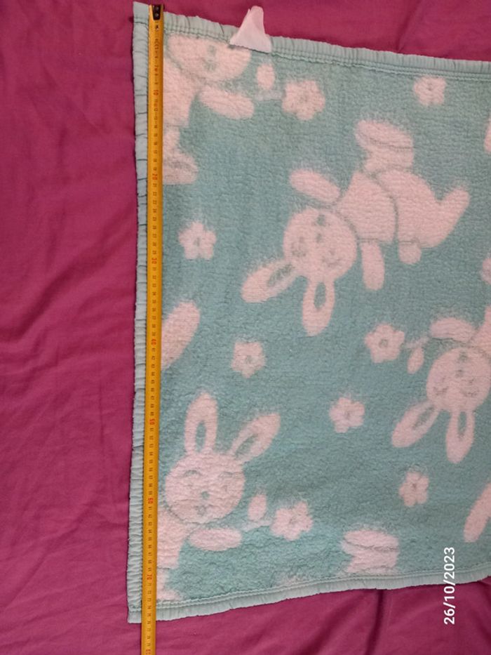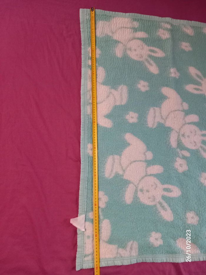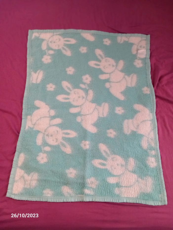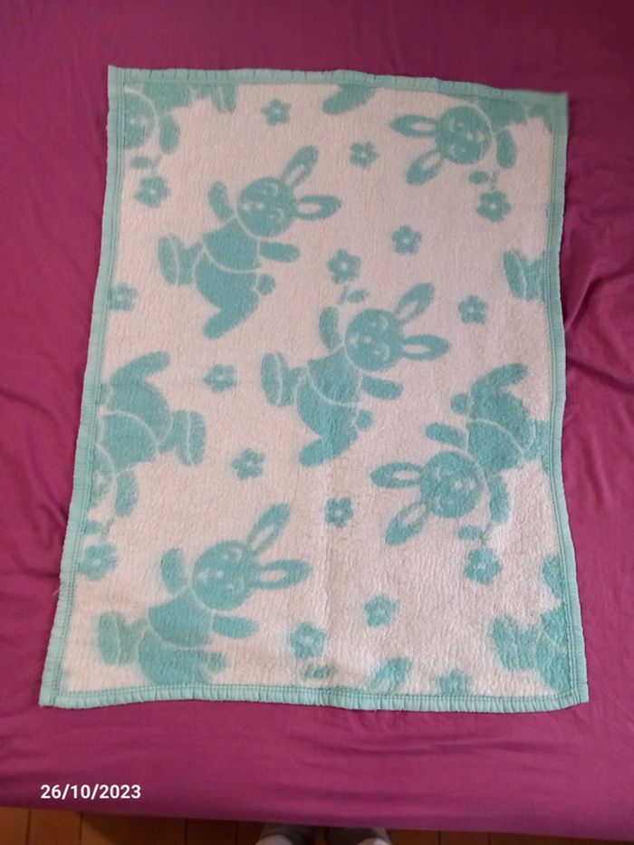 Couverture chaude . Pour couffin et lit bébé. Réversible . Un côté blanc lapin vert et un côté vert lapin blanc 🐰. Dimensions : longueur 100 Largueur 76 . En parfait état #alex08380_lingedelit