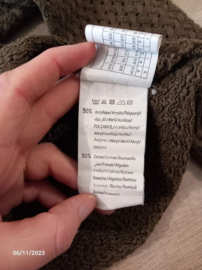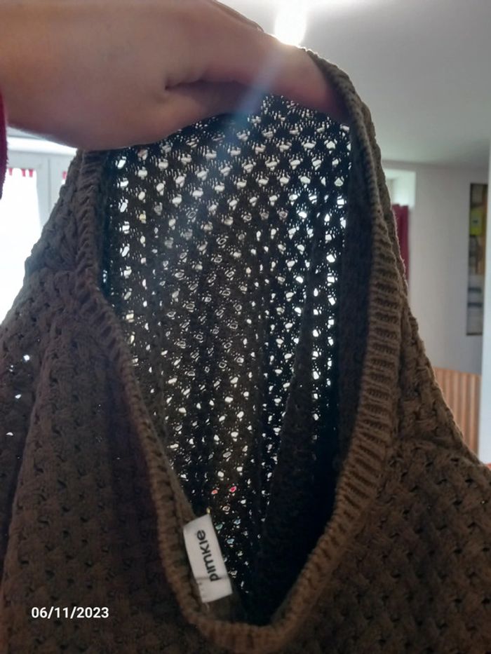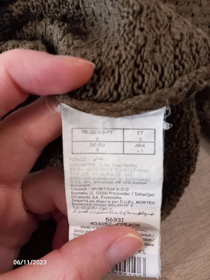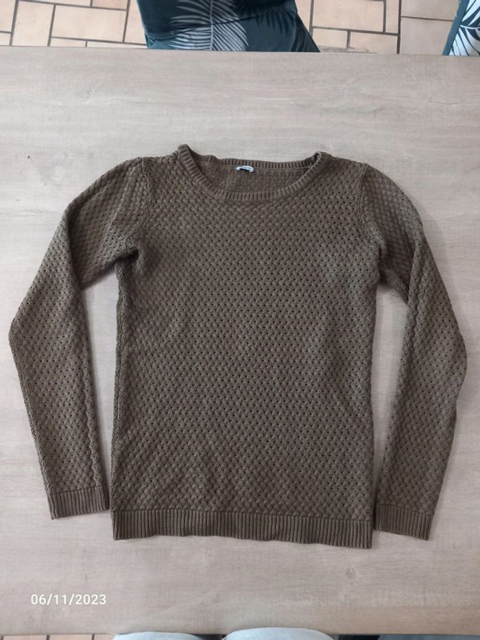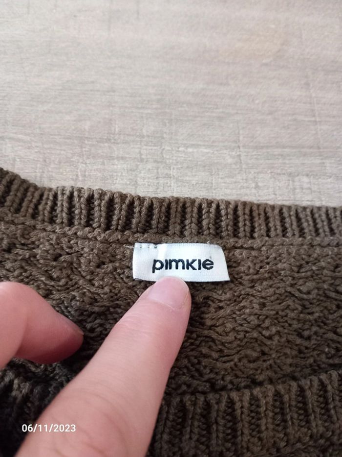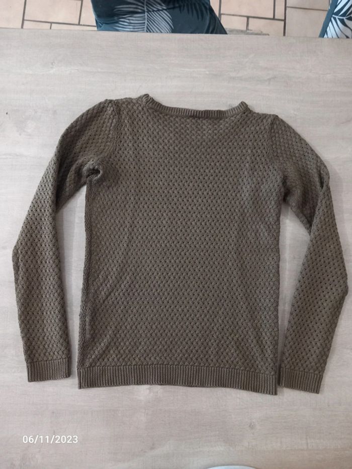 Pull fin . Serrant . De couleur kaki . Le pull est a grosse maille ( on peut voir la peau ) de marque pimkie . Taille S . En parfait état. #alex08380_36