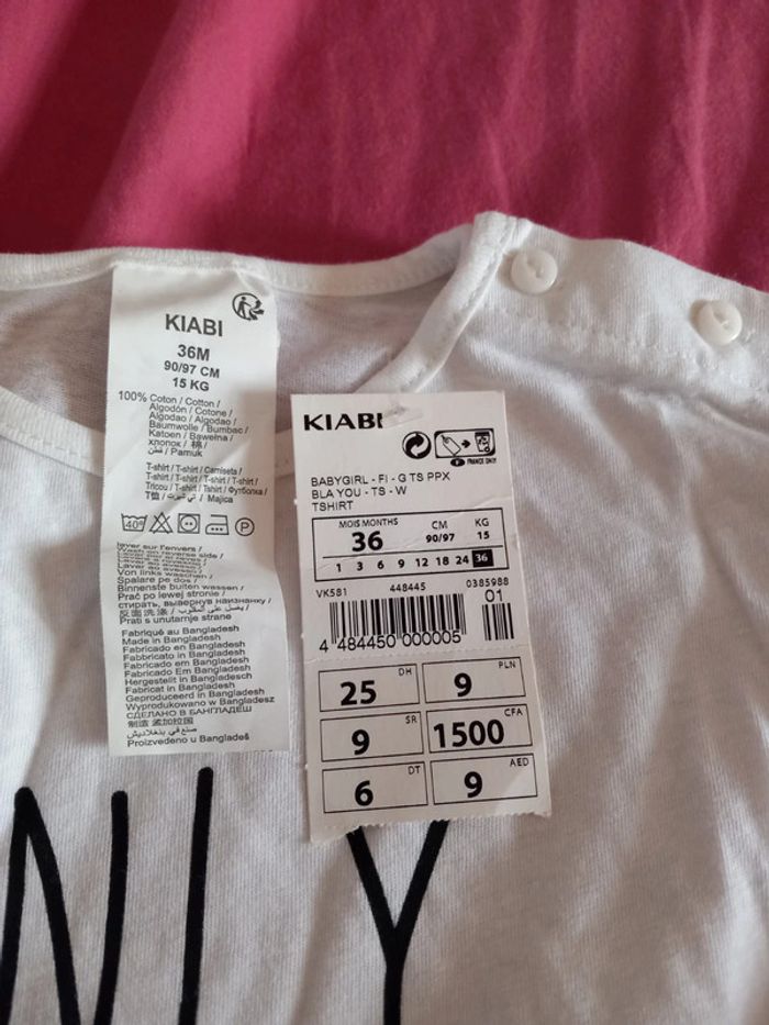 T-shirt. Blanc . A motif. Neuf . Taille 36 mois . Marque kiabi #alex08380_3ansfille