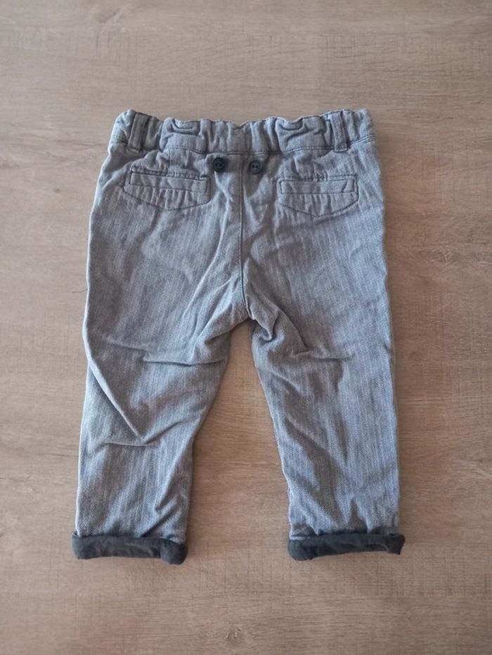 Pantalon. Gris . Doublure a l'intérieur. Serrant aux chevilles. Fermeture a pression. Taille élastique et Réglable. Bouton pour mettre des bretelles. Taille 12 mois . Marque in extenso En parfait état #alex08380_12moisgarçon