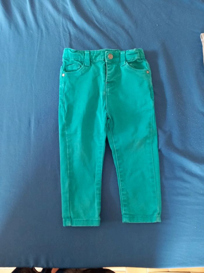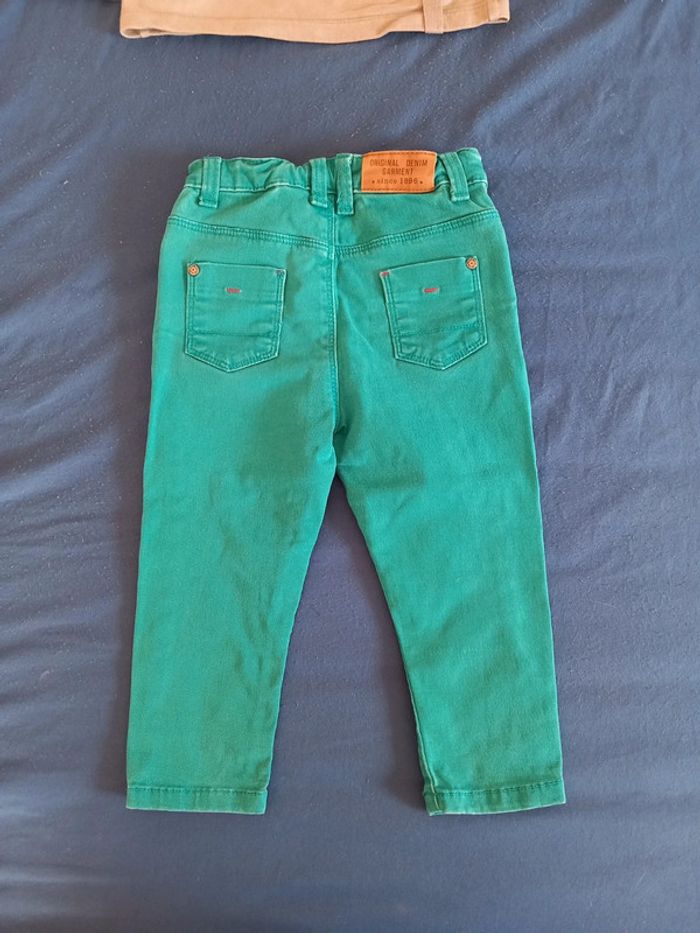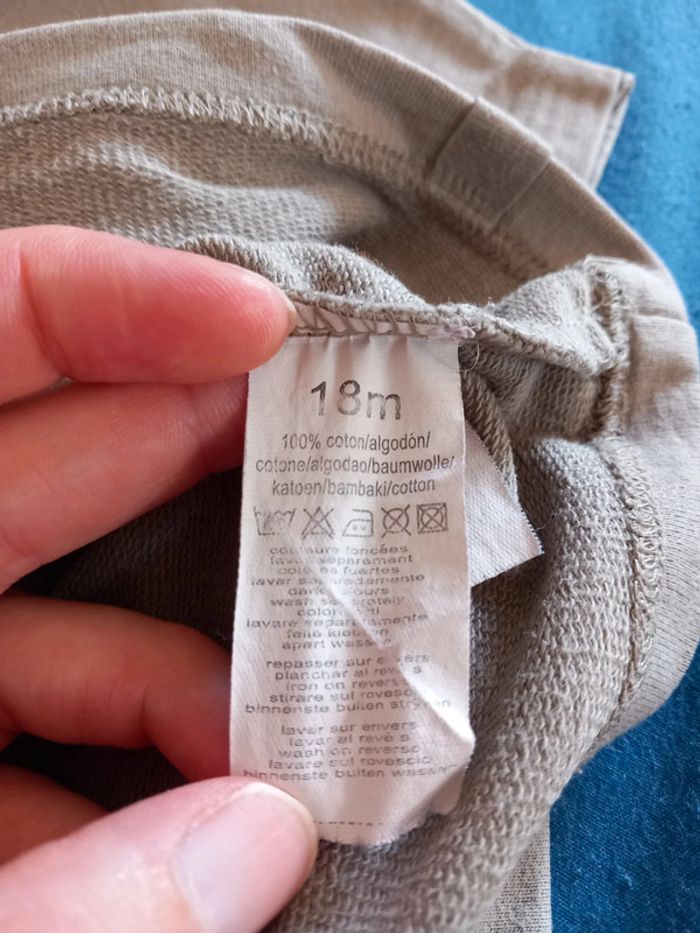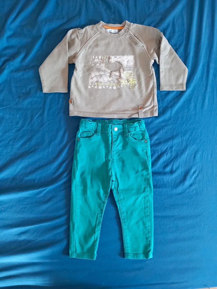 Ensemble . De marque tex baby . composé de : Un pull . De couleur kaki . Pression sur l'épaule. Un jeans . Serrant aux chevilles. De couleur vert . Fermeture a Bouton pression . 2 poches devant et derrière. Réglable a la taille Taille 18 mois . En parfait état. #alex08380_18moisgarçon