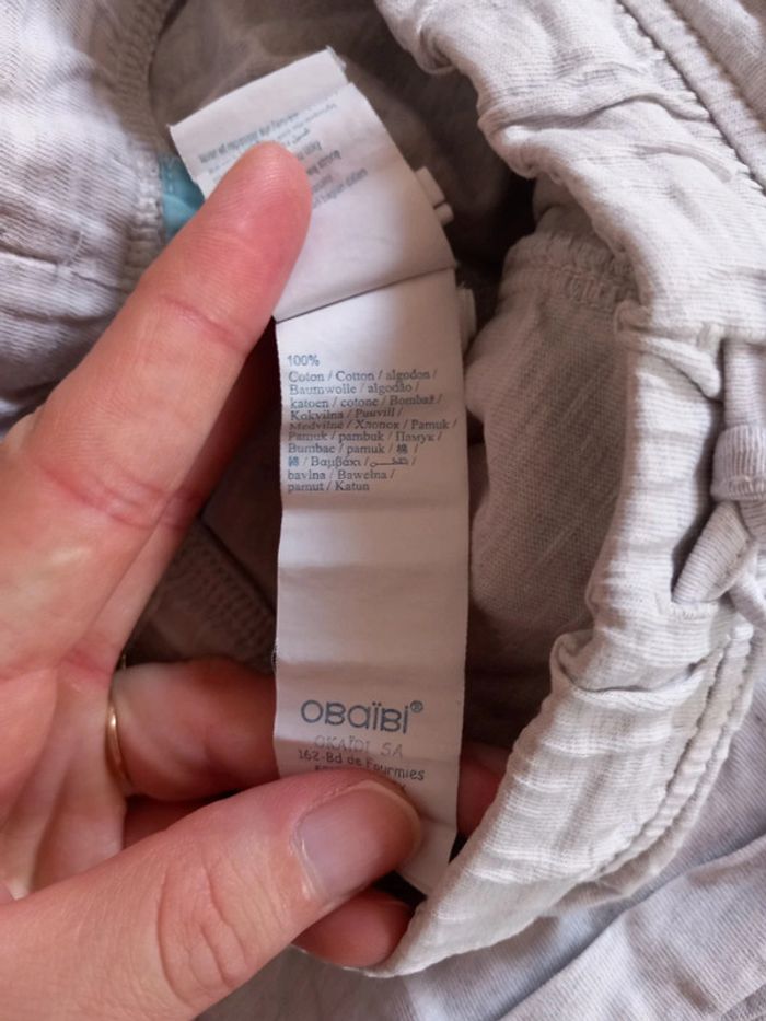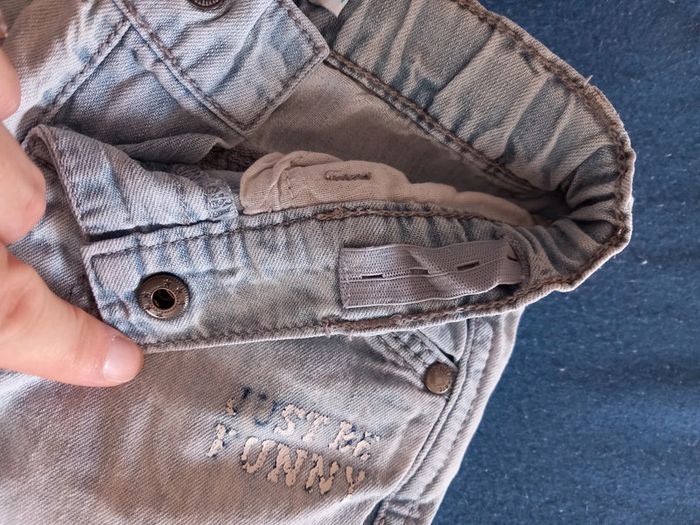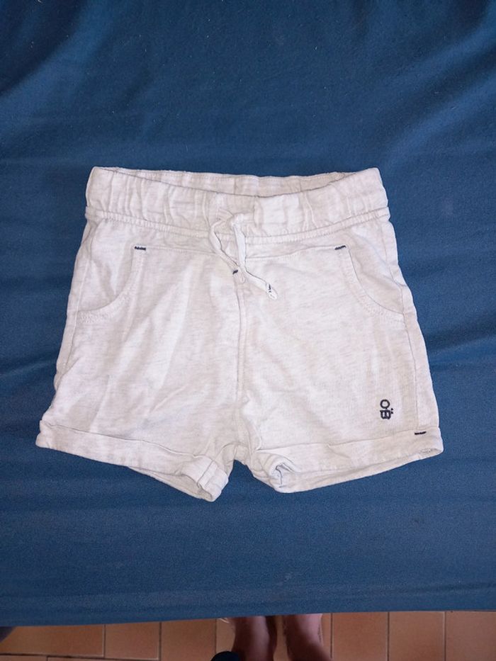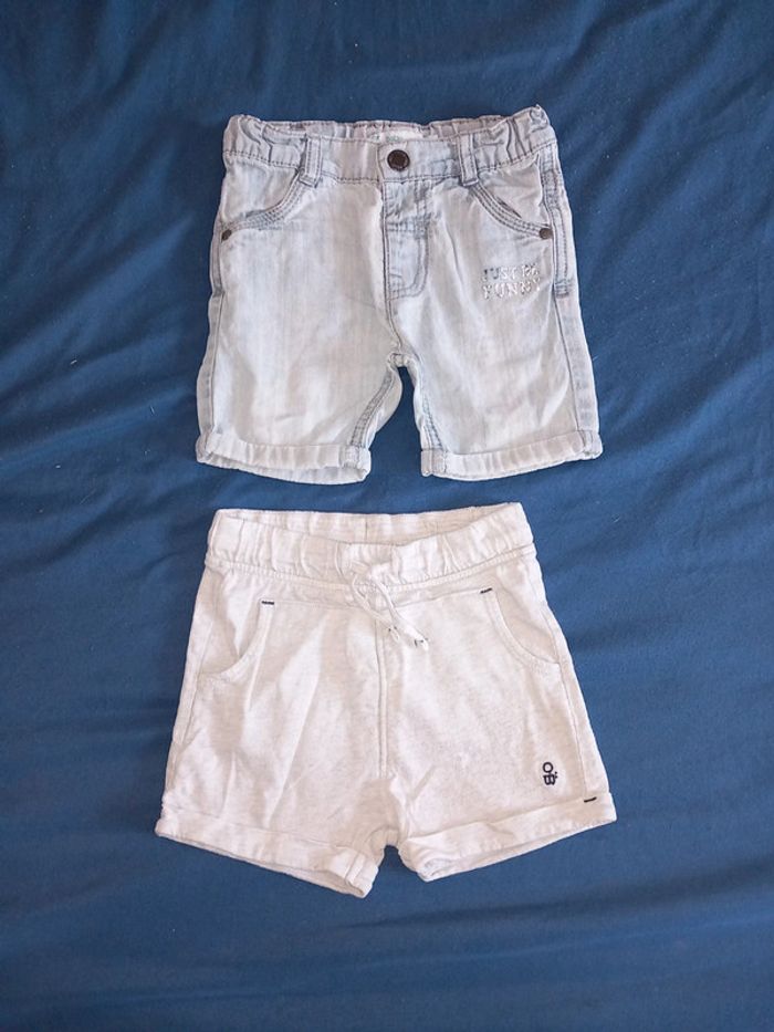 Lot de 2 short composé de : Un short bleu style jeans . Bouton pression. Réglable a la taille. Ecriture devant impe passer . 2 poches devant et derrière. De marque Gémo. Un short . Gris . Fin . Taille élastique. Serrant grâce au cordon . 2 poche devant . De marque obaibi. Taille 18 mois . En parfait état. #alex08380_18moisgarçon