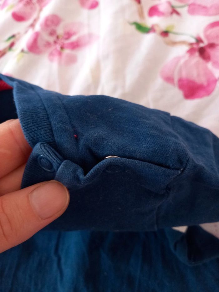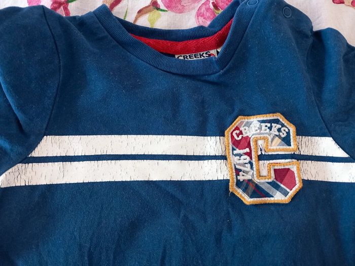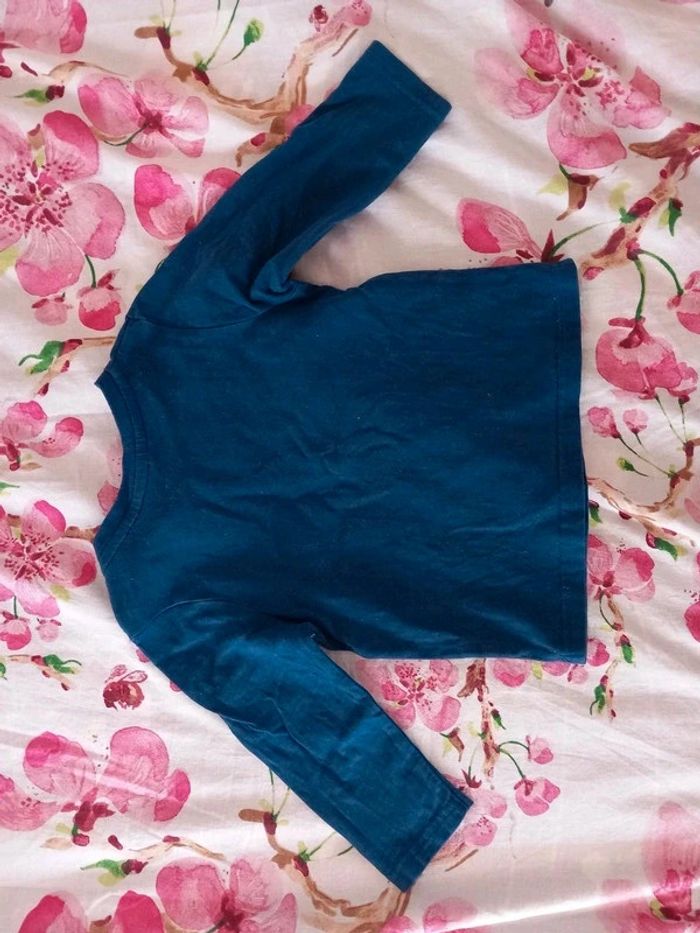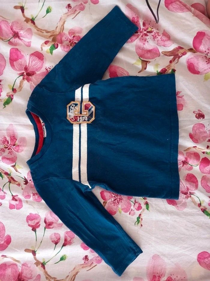T-shirt. Manches longues. Ouverture à l'épaule par pressions. Motif bordure blanche impe craquelé voir photo . Taille 18 mois #alex08380_18moisgarçon