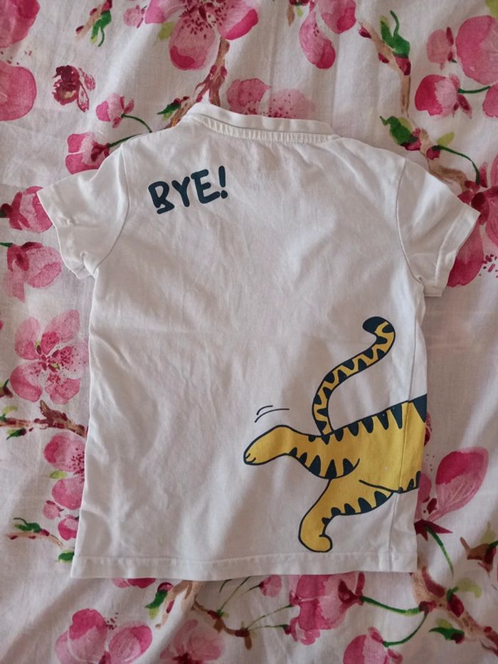 T-shirt. Manches courtes. Fin . Motif chat 🐱. Taille 12 mois . 100% coton . Ouverture à l'épaule par bouton et pression. #alex08380_12moisgarçon