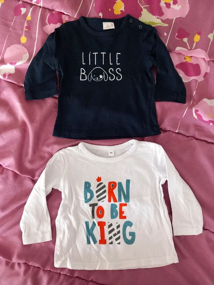 Lot de t-shirts fin manche longue. Le noir de marque kiabi et le blanc carrefour. Taille 9 mois . #alex08380_9moisgarçon