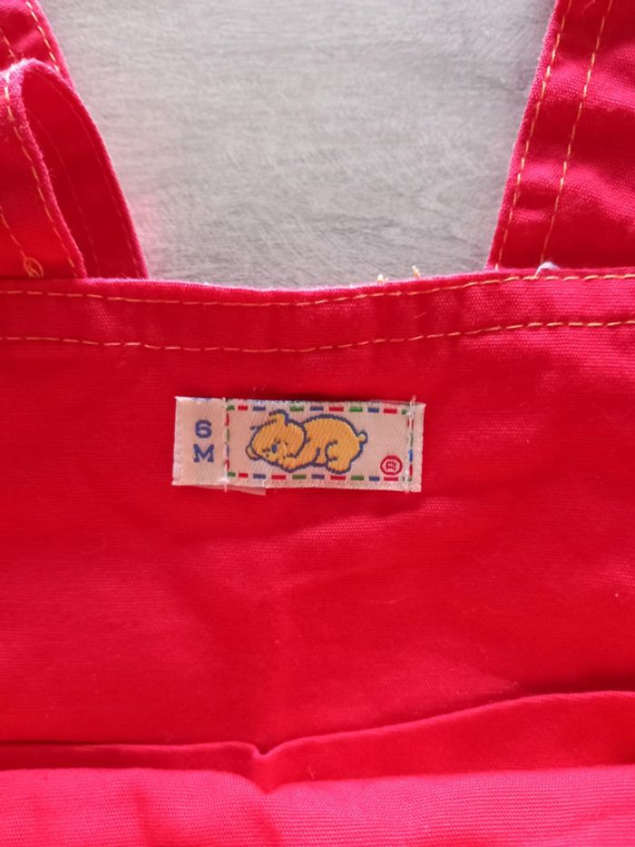 Salopette / short été en 6 mois . Fine . Ouverture entre les jambes. Couleur rouge . Ouverture a bretelles par passant. 100% coton. #alex08380_6moisgarçon