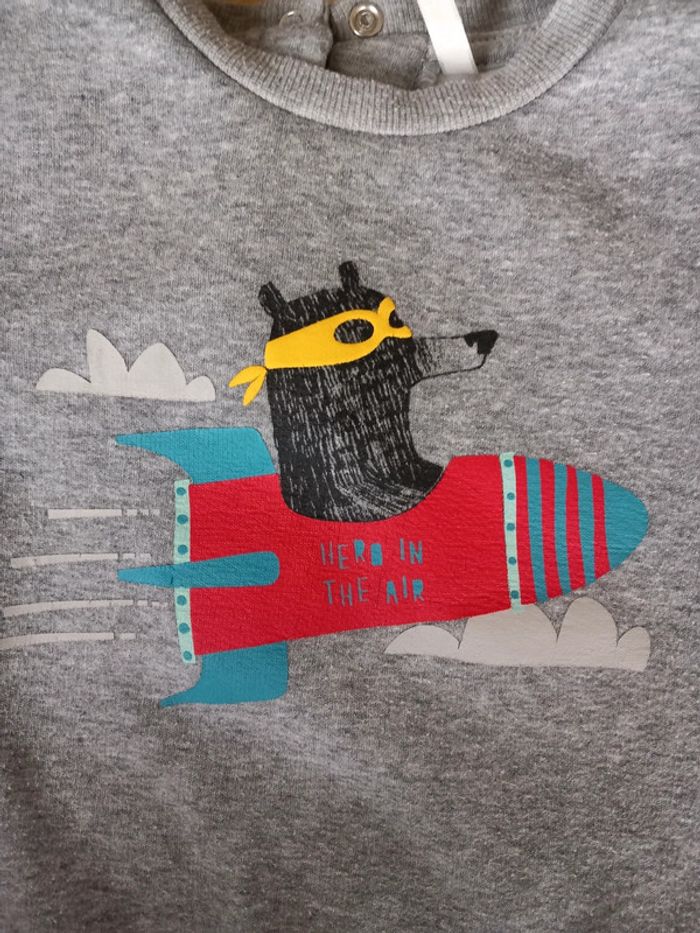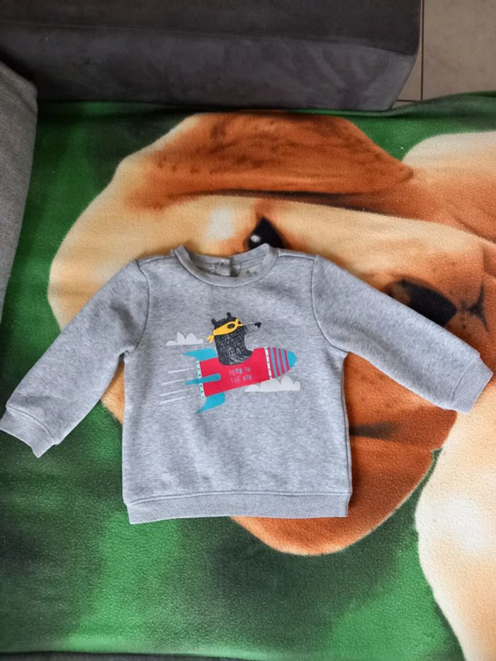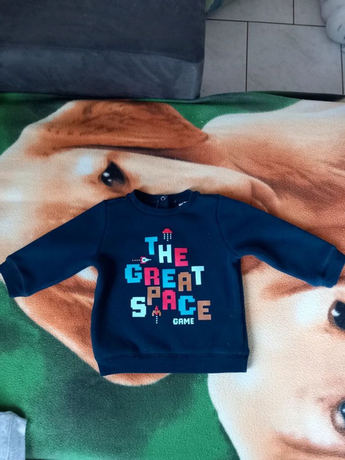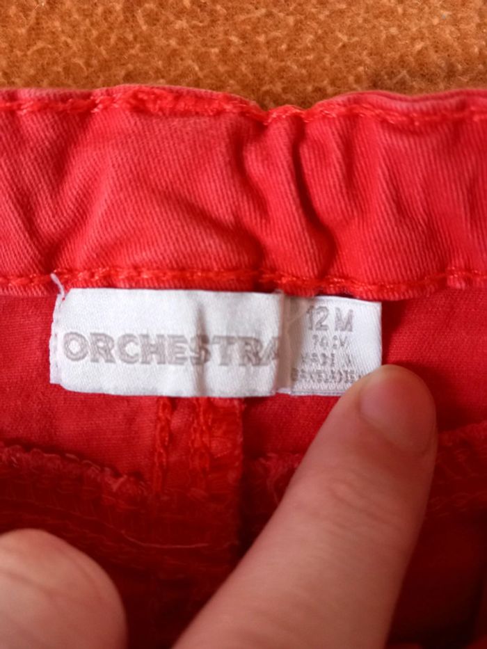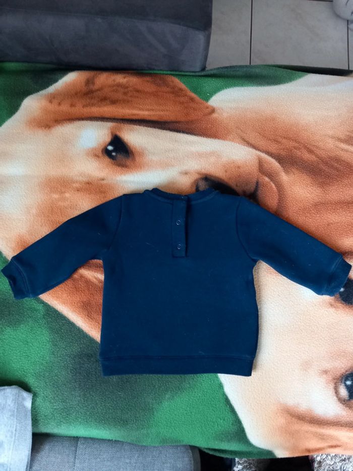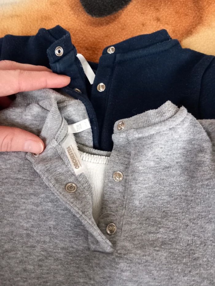 Ensemble de vêtements en 12 mois composé de : Un pull chaud gris . Pression derrière Un pull chaud marine. Pression derrière Un jeans slim corail avec des bandes sur les côtés . Réglable a la taille. Marque orchestra . #alex08380_12moisgarçon
