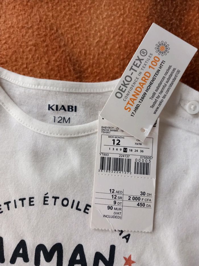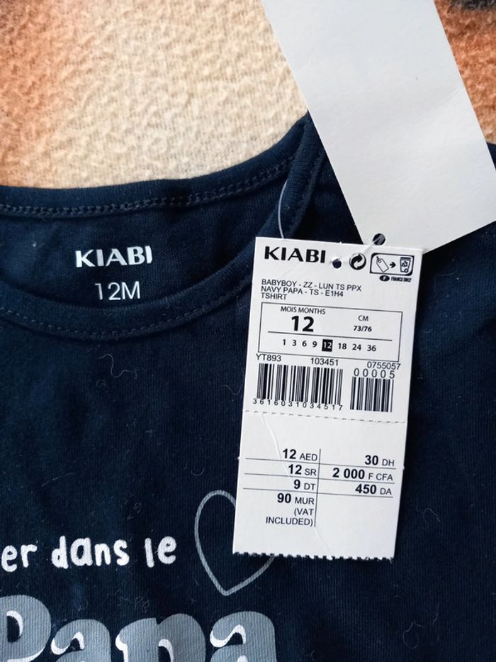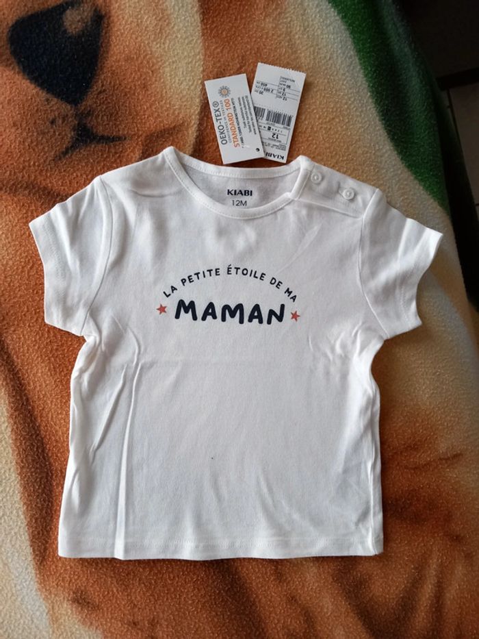 Lot de t-shirts manche courte . Un noir et un blanc . Neuf . Marque kiabi . #alex08380_12moisgarçon