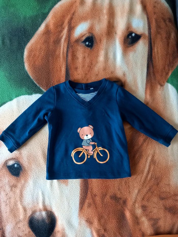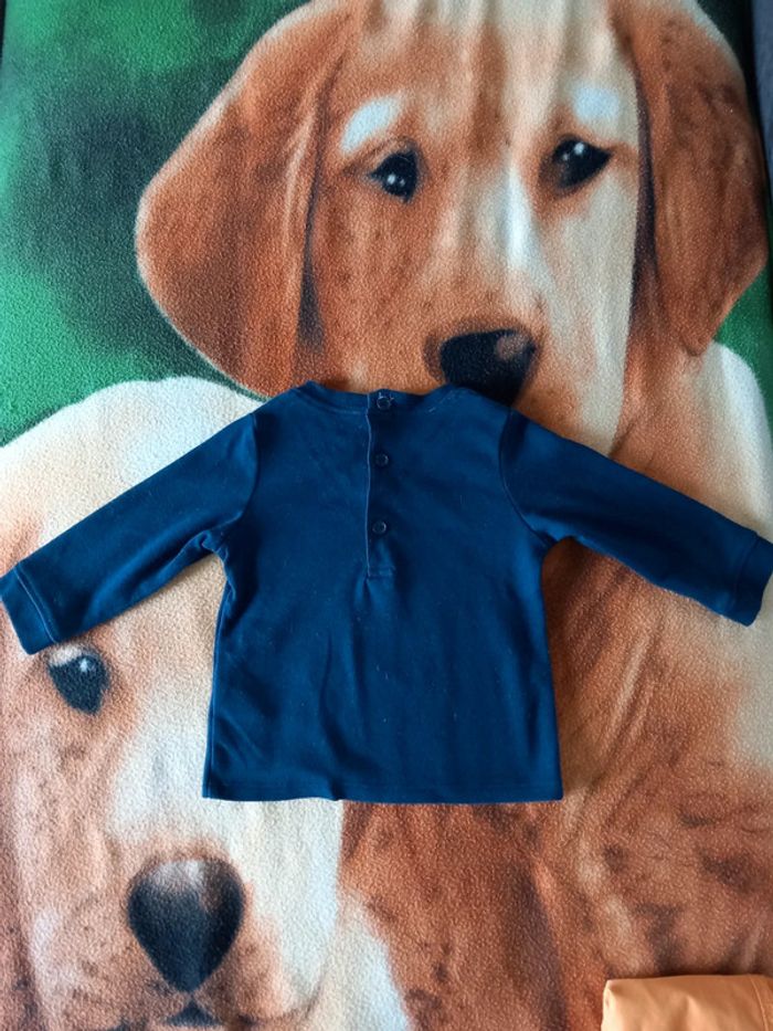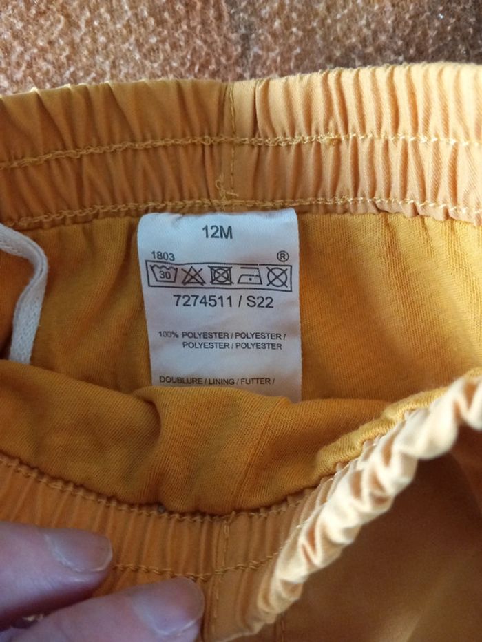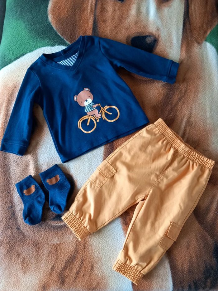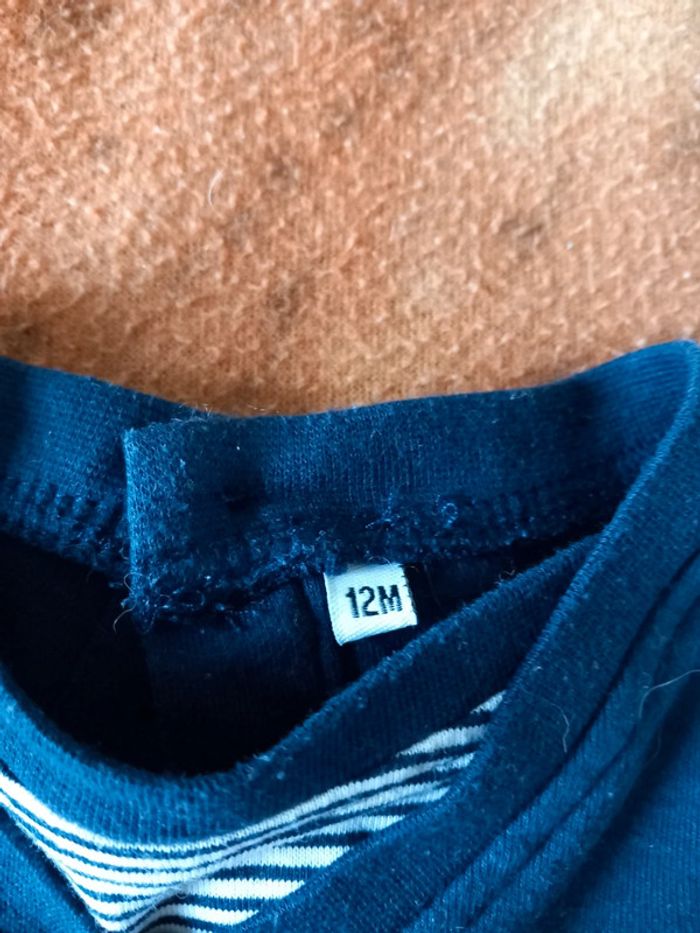 Ensemble en 12 mois composé de : Un sweat fin marine . Bouton derrière . Un pantalon couleur moutarde . Une paire de chaussette #alex08380_12moisgarçon