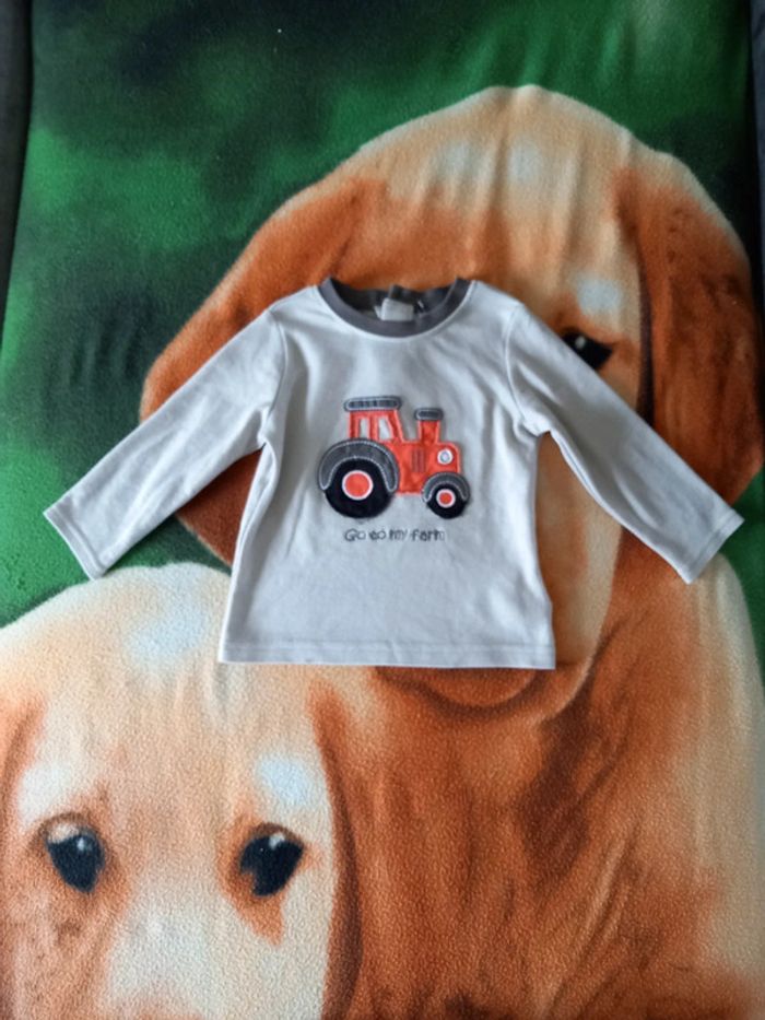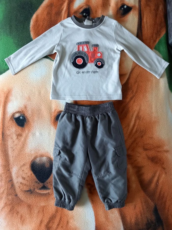 Ensemble maillot manche longue motif tracteur avec bouton derrière et un pantalon. Neuf juste laver Taille 12 mois #alex08380_12moisgarçon