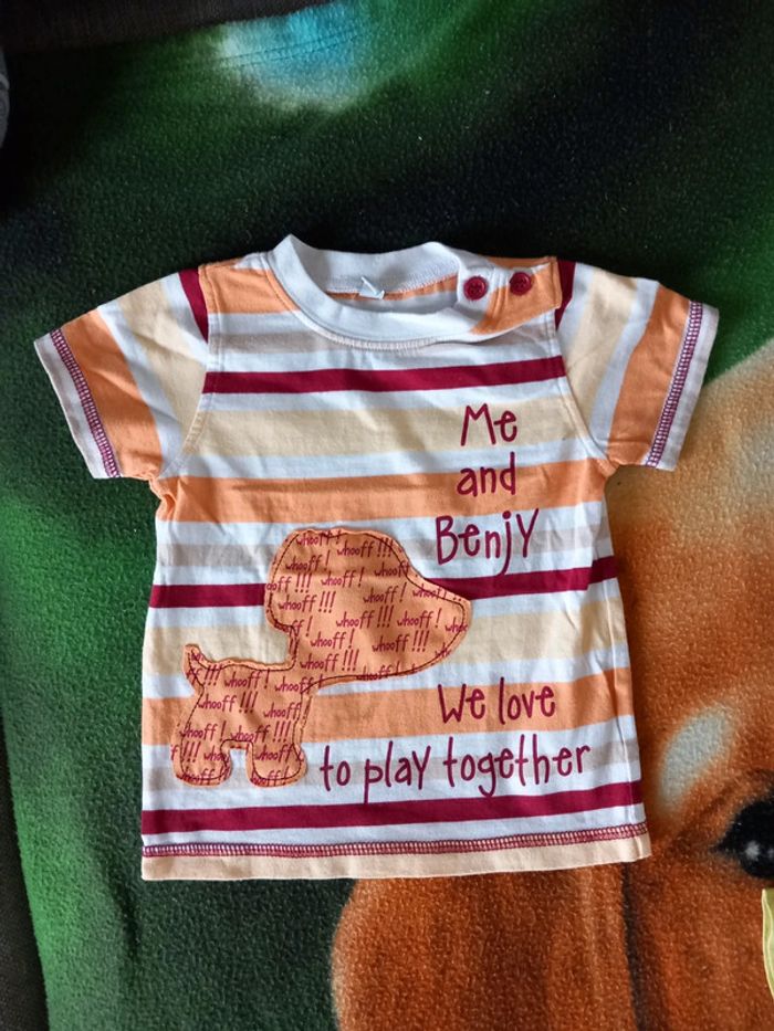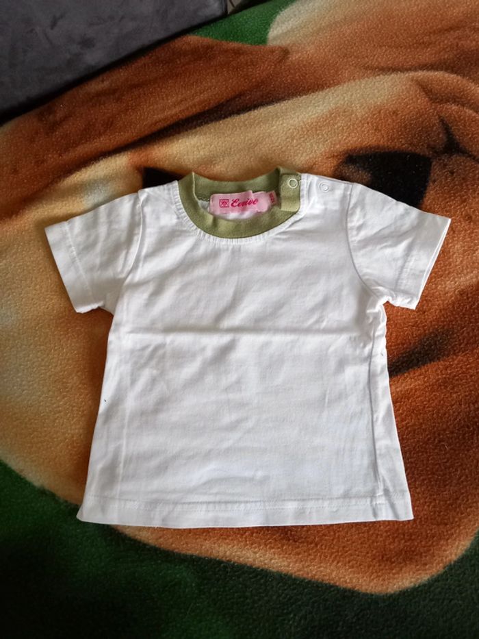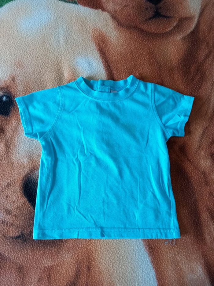 Lot de t-shirts manche courte . Le vert a une petite tâche derrière voir photo . Je donne le bleu clair uni car tâcher. #alex08380_12moisgarçon