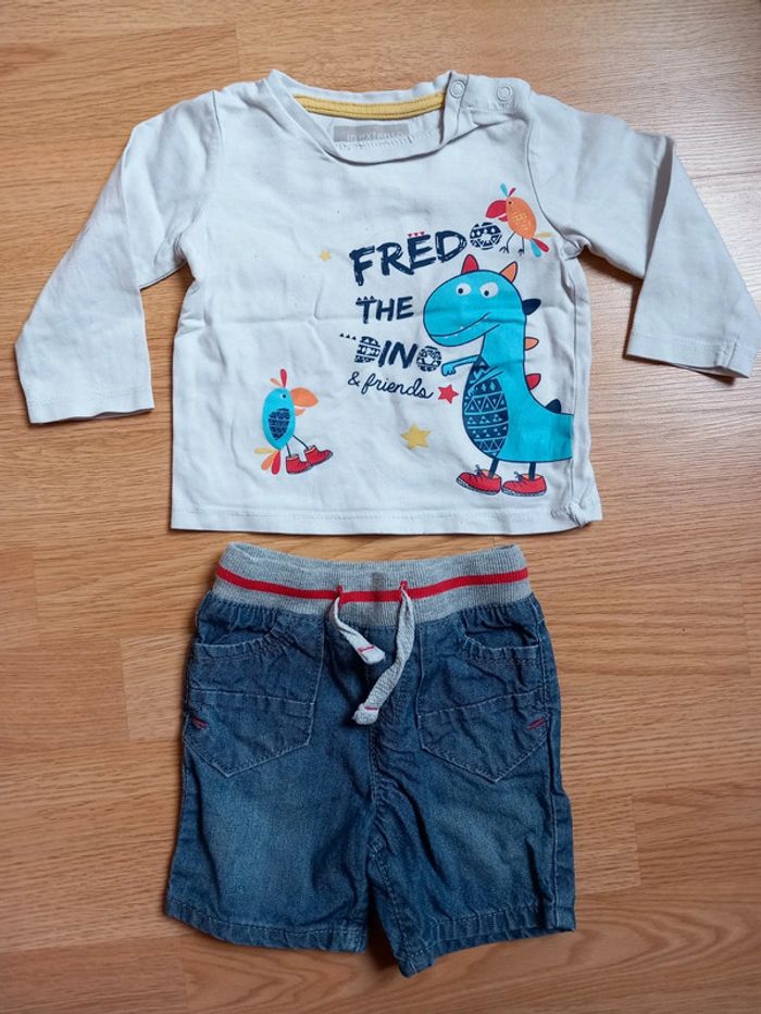 #alex08380_9moisgarçon Ensemble maillot manche longue et short en jeans Marque in extenso Taille 9 mois.