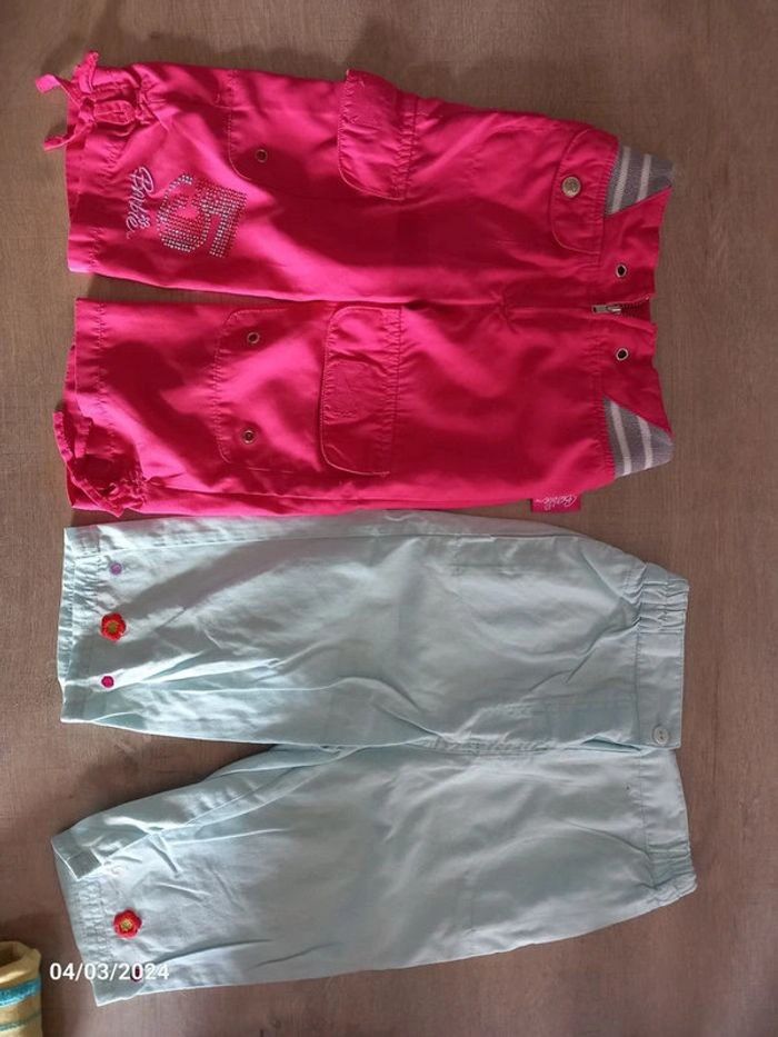 #alex08380_2ansfille Lots de pantacourt fin . Taille 23 mois Un rose . Barbie. Fermeture éclair devant . Taille élastique . En parfait état Un bleu ciel . Broderie sur le bas des jambes. Taille élastique . En parfait état Je donne avec le dora car tâcher Possible de vendre a l'unité.