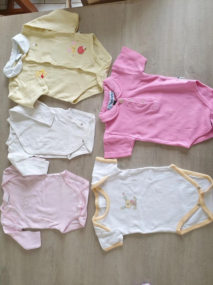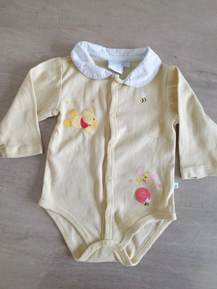 #alex08380_3moisfille Lot bodies ( 3 manches longues et 2 manches courtes) Le blanc manche long et le winnie l'ourson s'ouvre sur le devant Le jaune disney winnie l'ourson est un taille 3/6mois