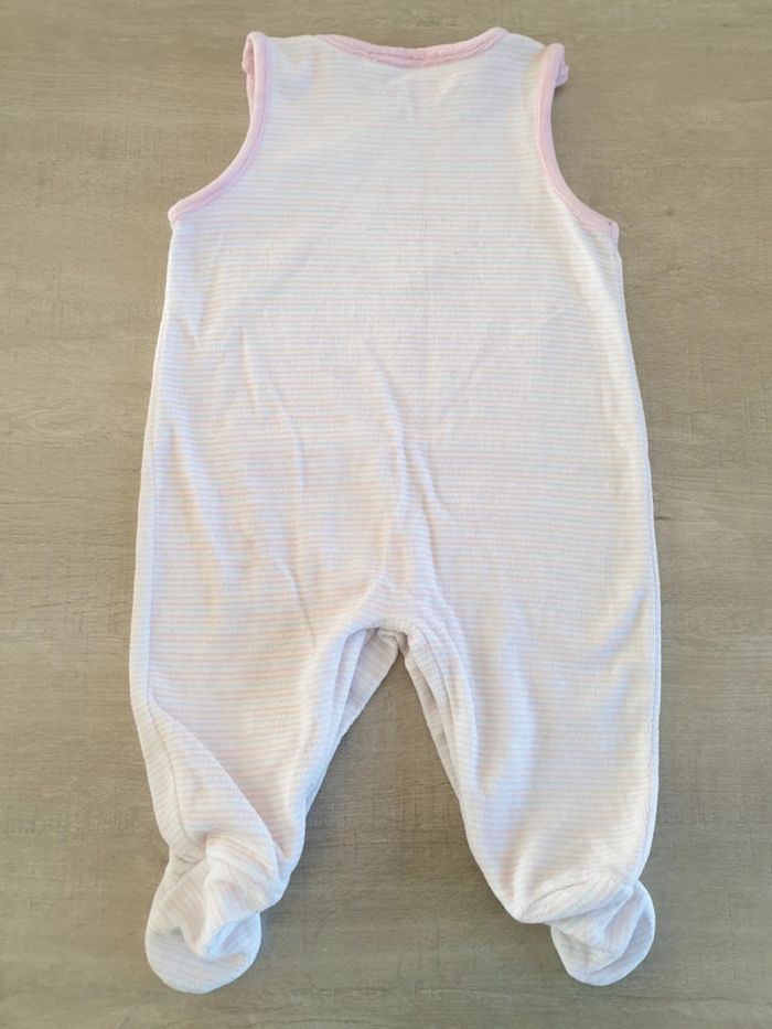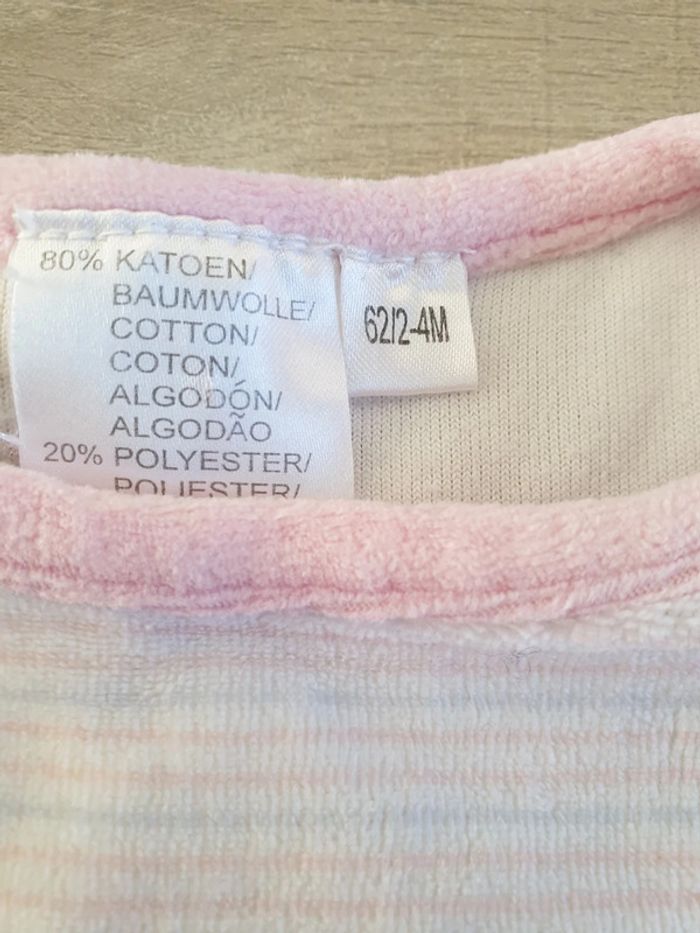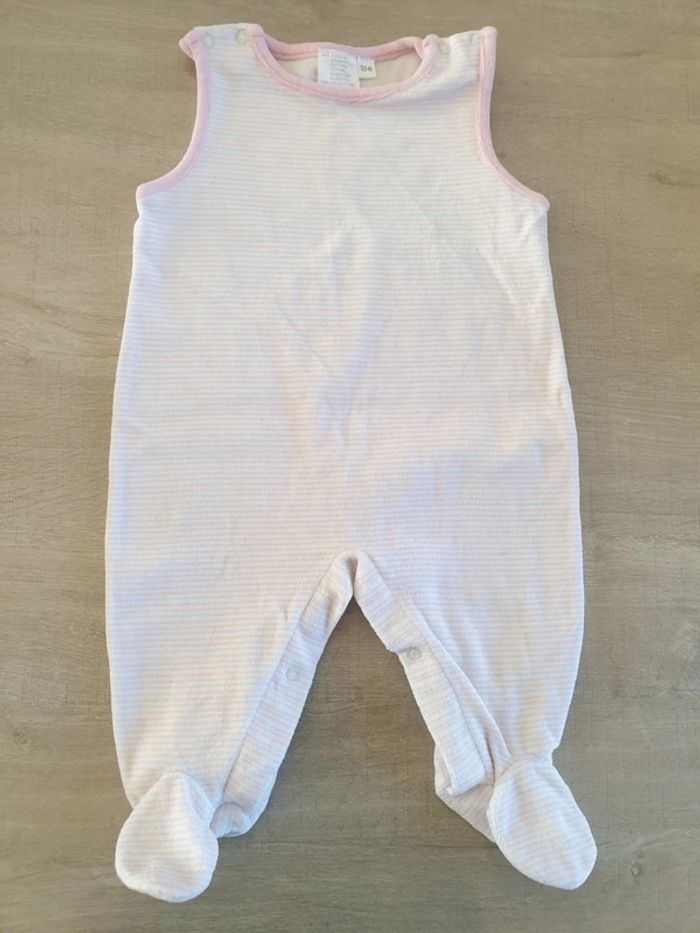 #alex08380_3moisfille Pyjama sans manche avec pieds . Matière velours. Pressions entre les jambes et aux épaules. Taille 62 .