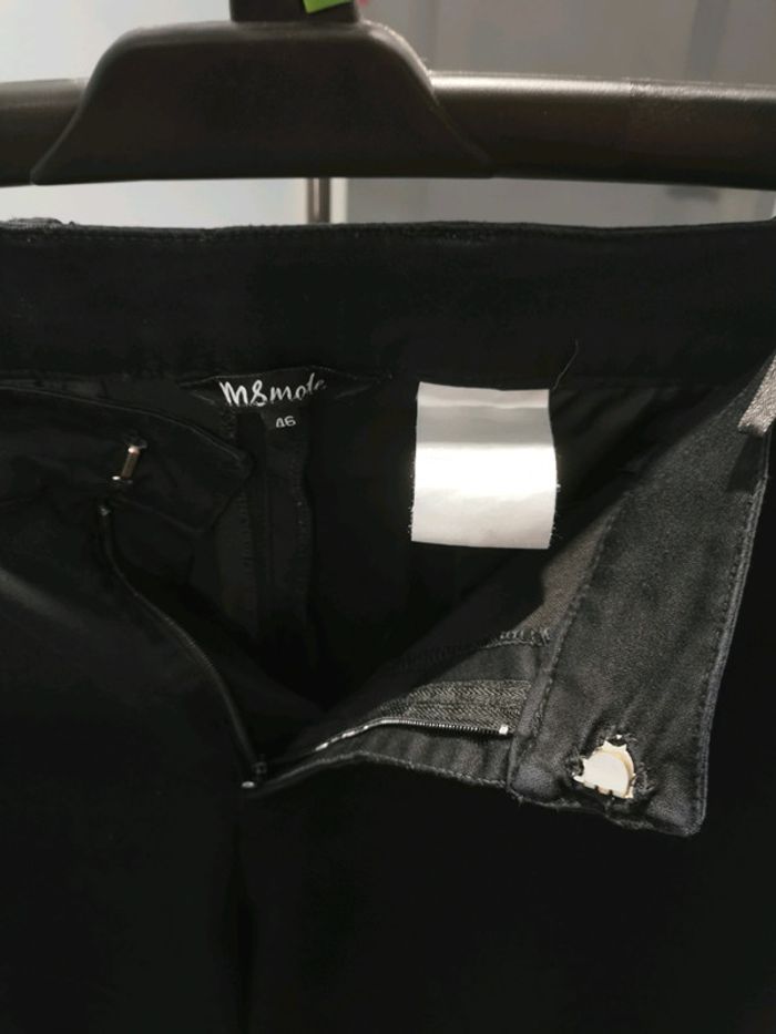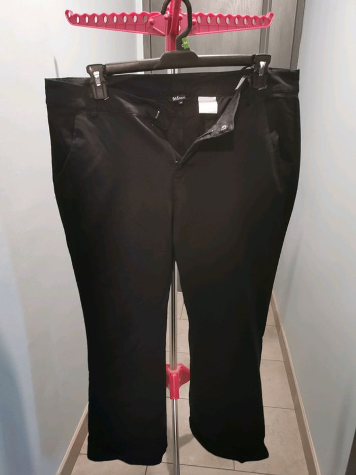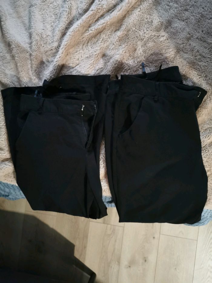 2 pantalons noirs identiques Bas de jambes larges 2 poches MS mode Taille 46 Les attaches ont étés recousues (voir photo 3) Très bon état Possibilité de vente à l'unité, me contacter