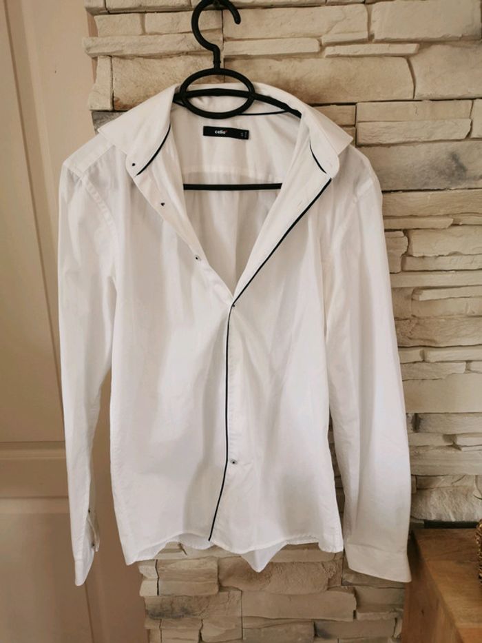Chemise blanche Lizeret bleu marine Celio Taille S