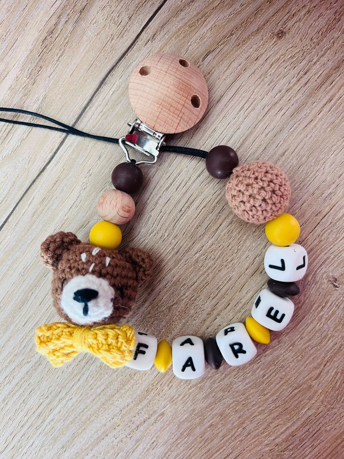 Attache tétine personnalisé en silicone ou en bois au souhait de l’acheteur . Personnalisable au choix de l’acheteur que ce soit la couleur comme le prénom ou le thème . Le fil est doublé pour plus de sécurité tout le long de l’attache tétine. N’hésitez pas à me demander et regarder mon dressing. Une photo vous sera envoyée avant l’expédition pour vous ayez un aperçu du rendu. Tous les produits sont réalisés avec du materiel spécial conçu aux bébés , enfants.