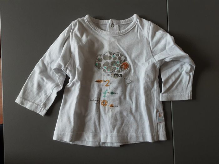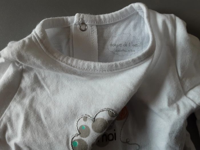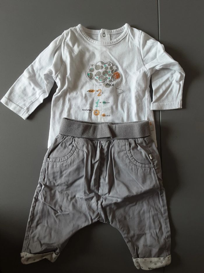 Ensemble tshirt manches longues Fermeture par pression dans le dos Tâche sur l’avant voir photo Pantalon doublé taille élastique Tape à l’œil Taille 6 mois #stef59dkcc6mois