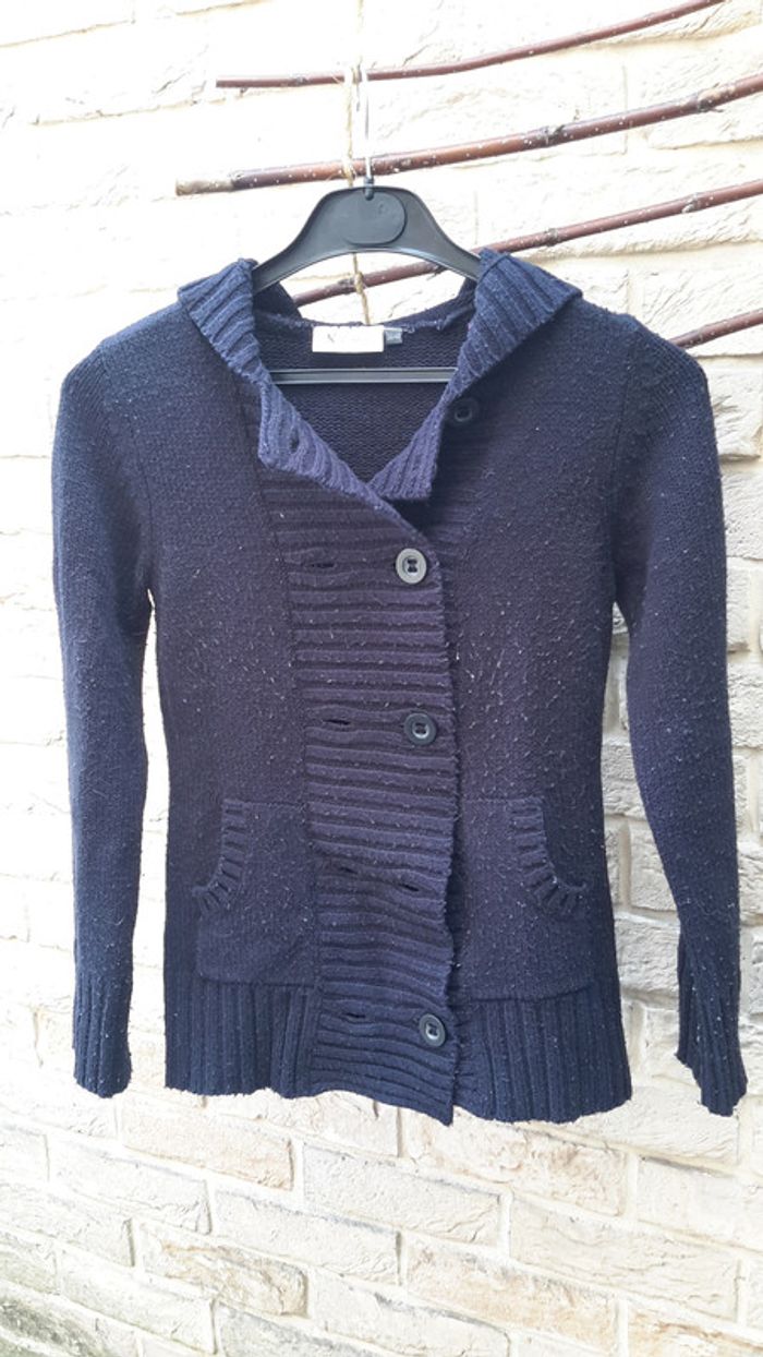 Gilet bleu marine a capuche Fermeture par une double rangée de boutons Porté Bouloche un peu K Woman Taille 38/40 #stef59dkm #stef59dkgilet #stef59dkpull
