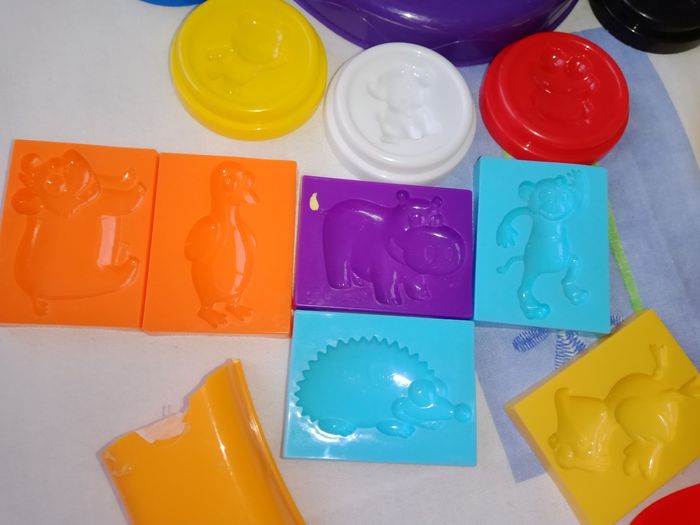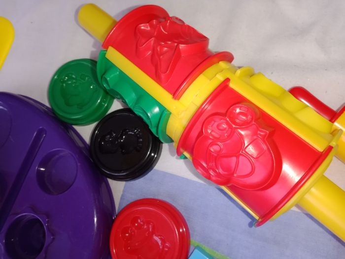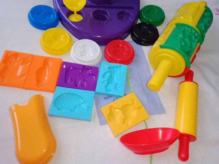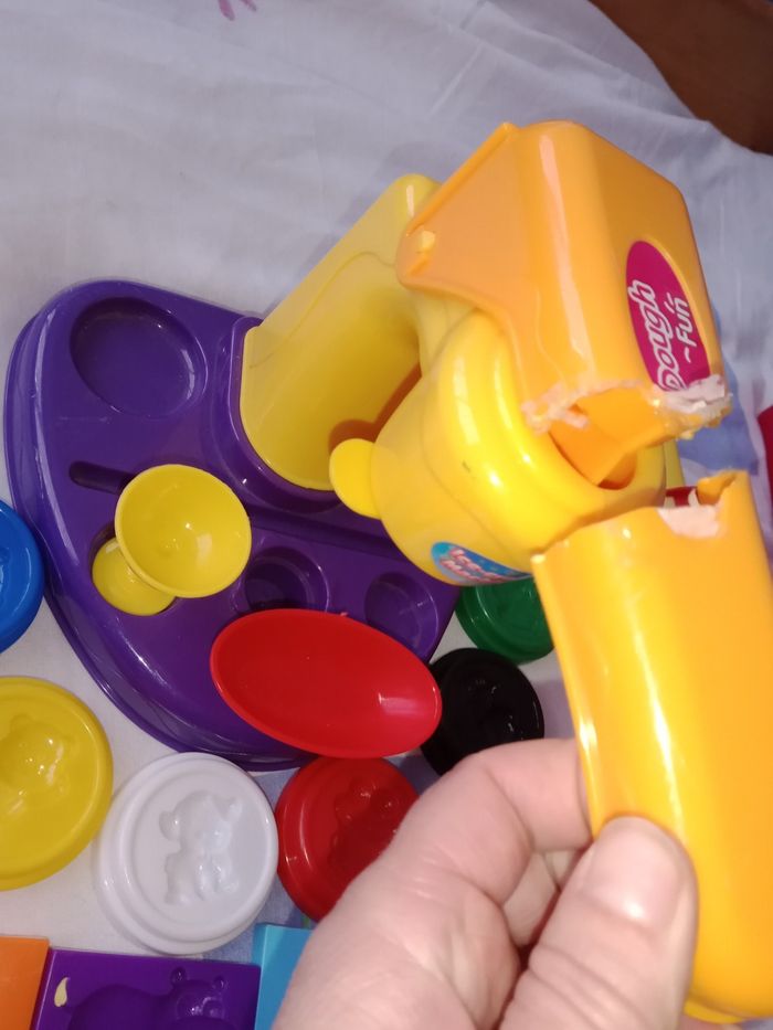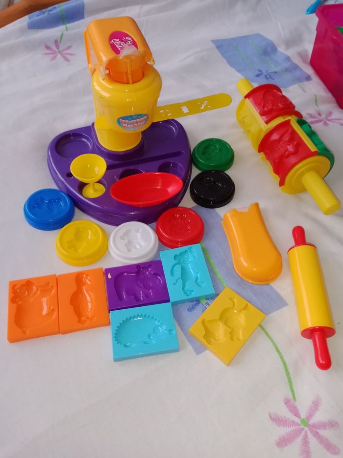 machine à glace Dough fun, Ice cream machine Poignée cassée mais toujours possible de l'utiliser sans. Avec plusieurs accessoires Dont 1 rouleau avec 6 formes qui peuvent être enlever